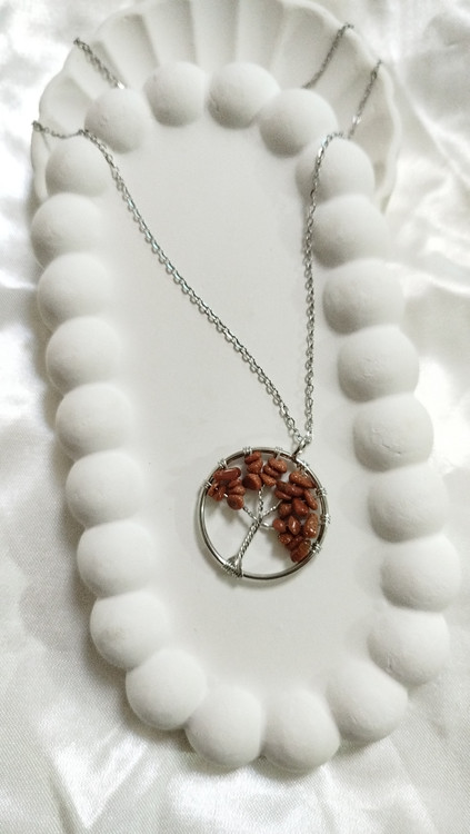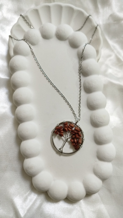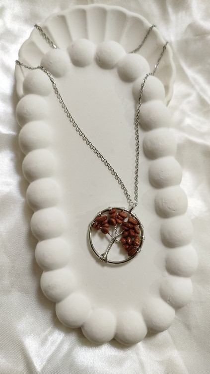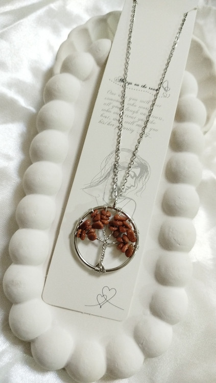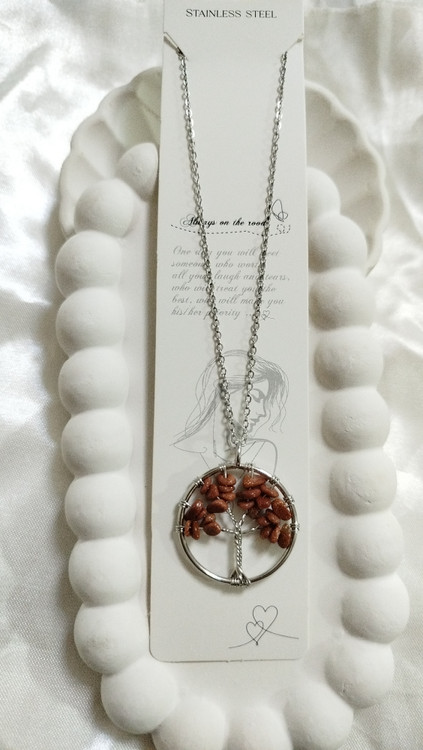 گردنبند درخت زندگی سنگ عقیق سلیمانی و چشم ببر با خاصیت آرامش ، تعادل و کاهش اظطراب کار دست هنرمندان زنجیر دیپلمات استیل نقره‌ای رنگ ثابت
