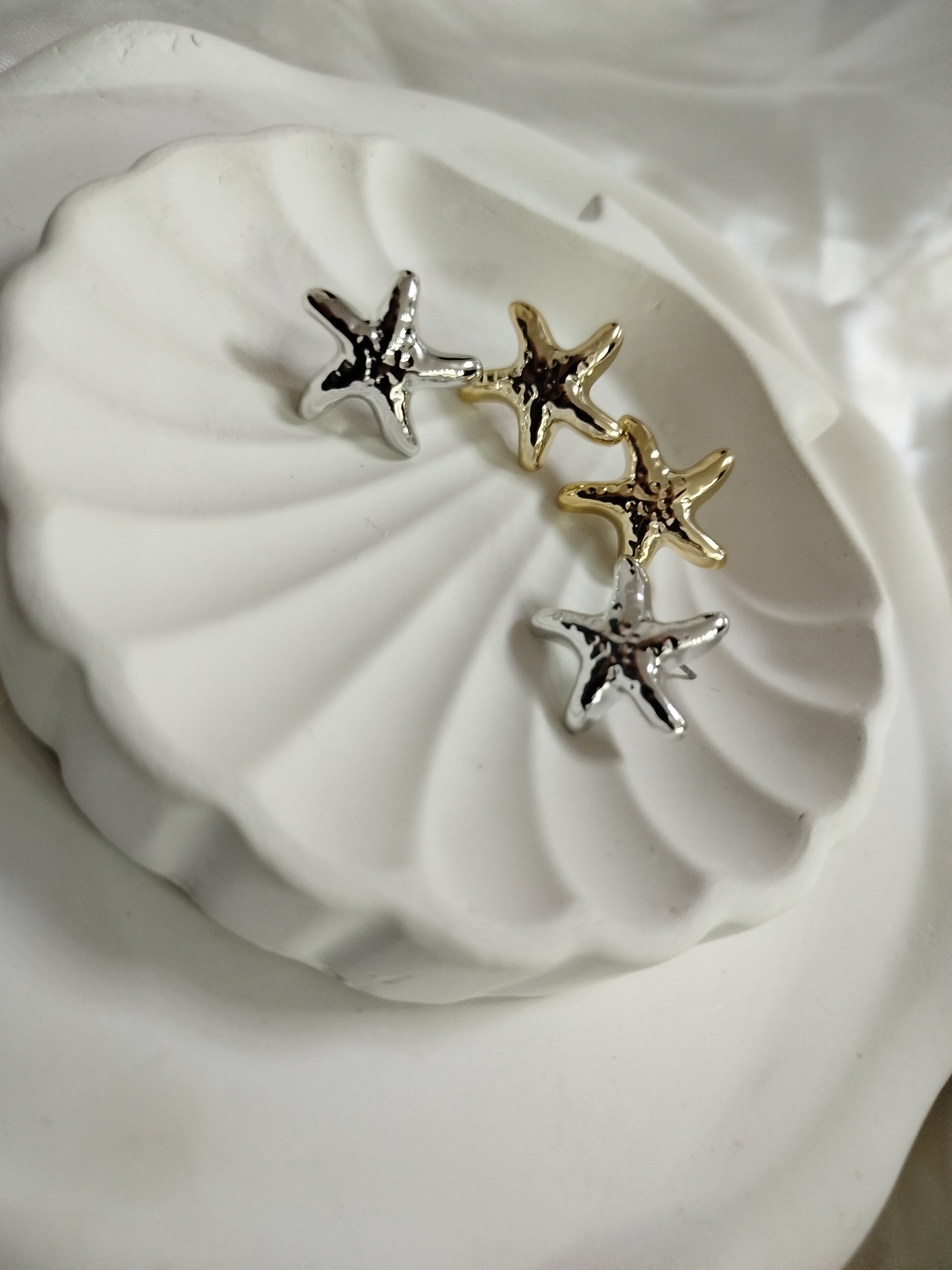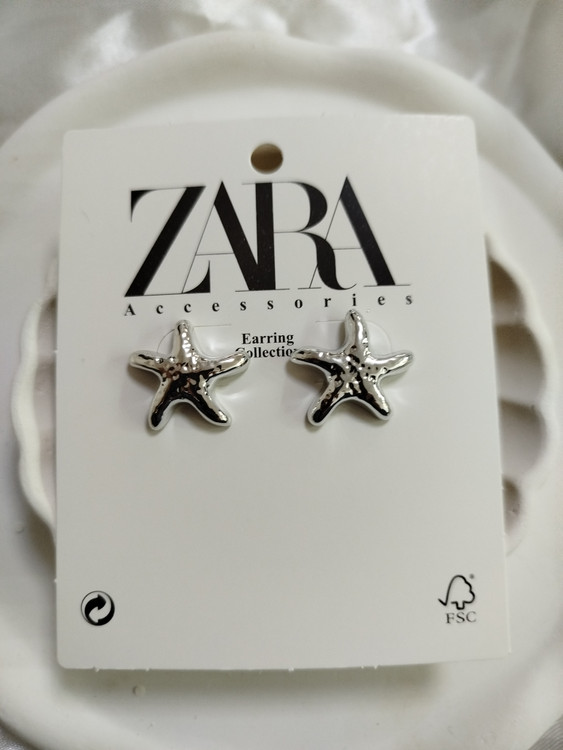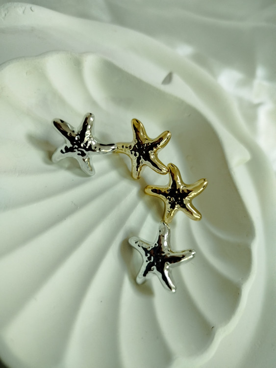 گوشواره ستاره دریایی فشن جنس رادیوم آبکاری طلا و نقره در دو رنگ طلایی و نقره ای از برند زارا اروپا