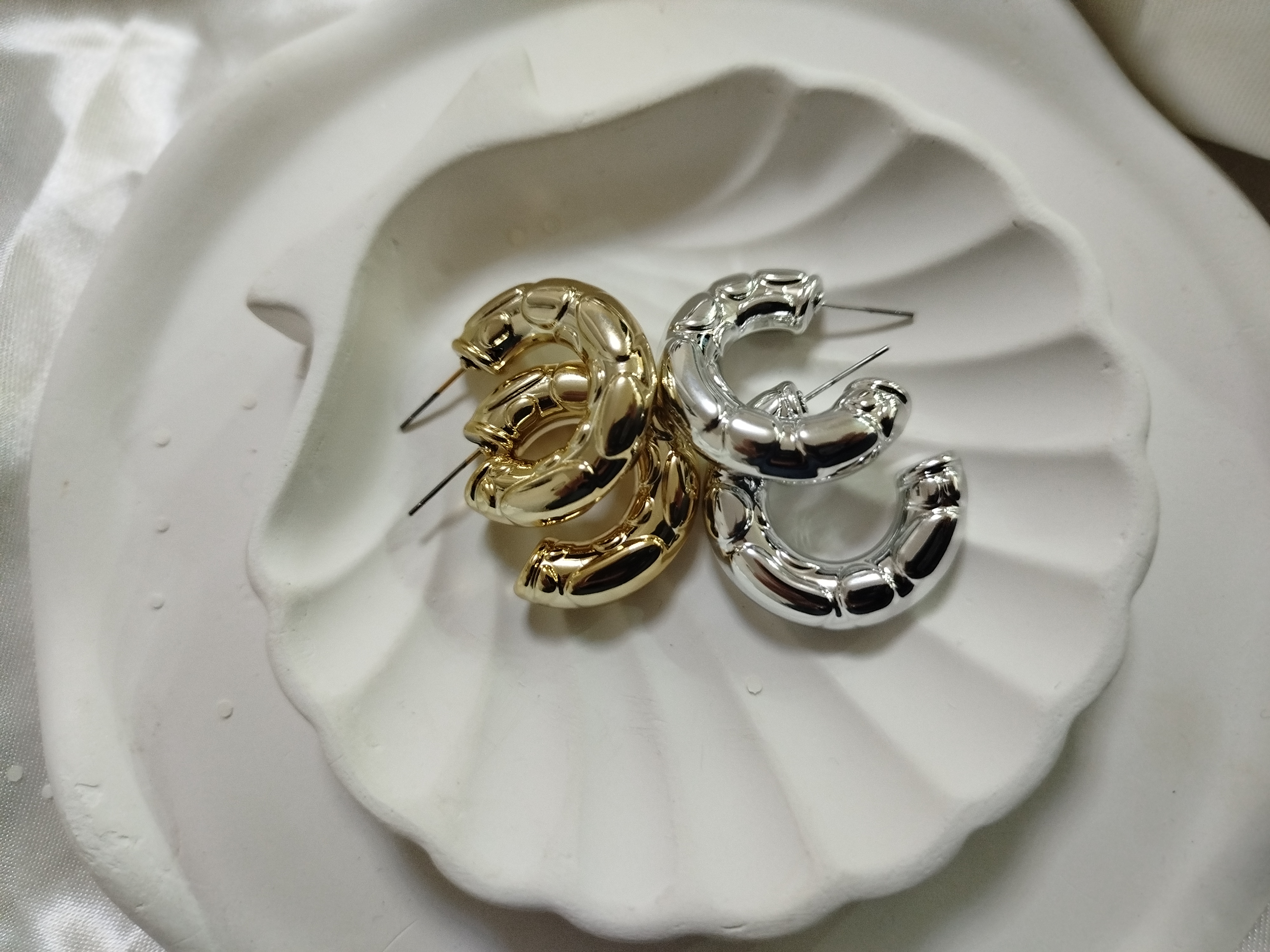 گوشواره حلقه ای مدل حبابی فشن جنس رادیوم آبکاری طلا و نقره رنگ ثابت بسیار لوکس از برند زارا اروپا