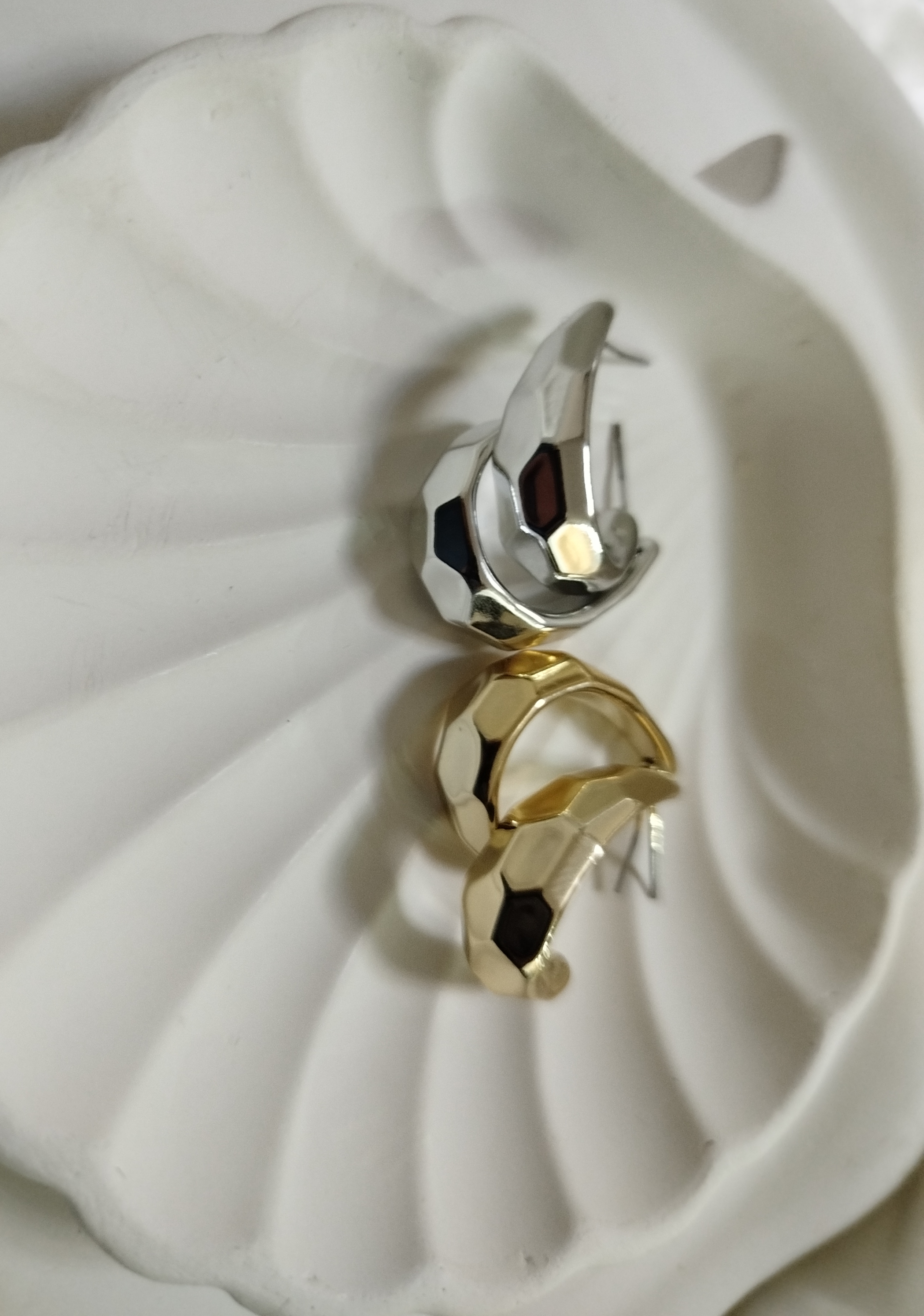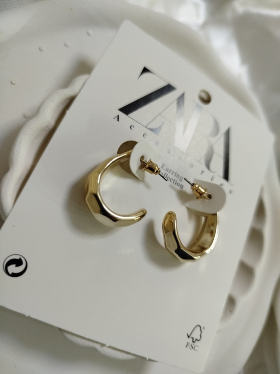 گوشواره هندسی بیضی طرح الماسی بازتاب نور جنس رادیوم خالص سبک آبکاری طلا و نقره طلایی و نقره‌ای از برند زارا ایتالیا