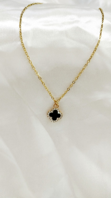 گردنبند ونکلیف مشکی دور نگین طلایی زنانه استیل