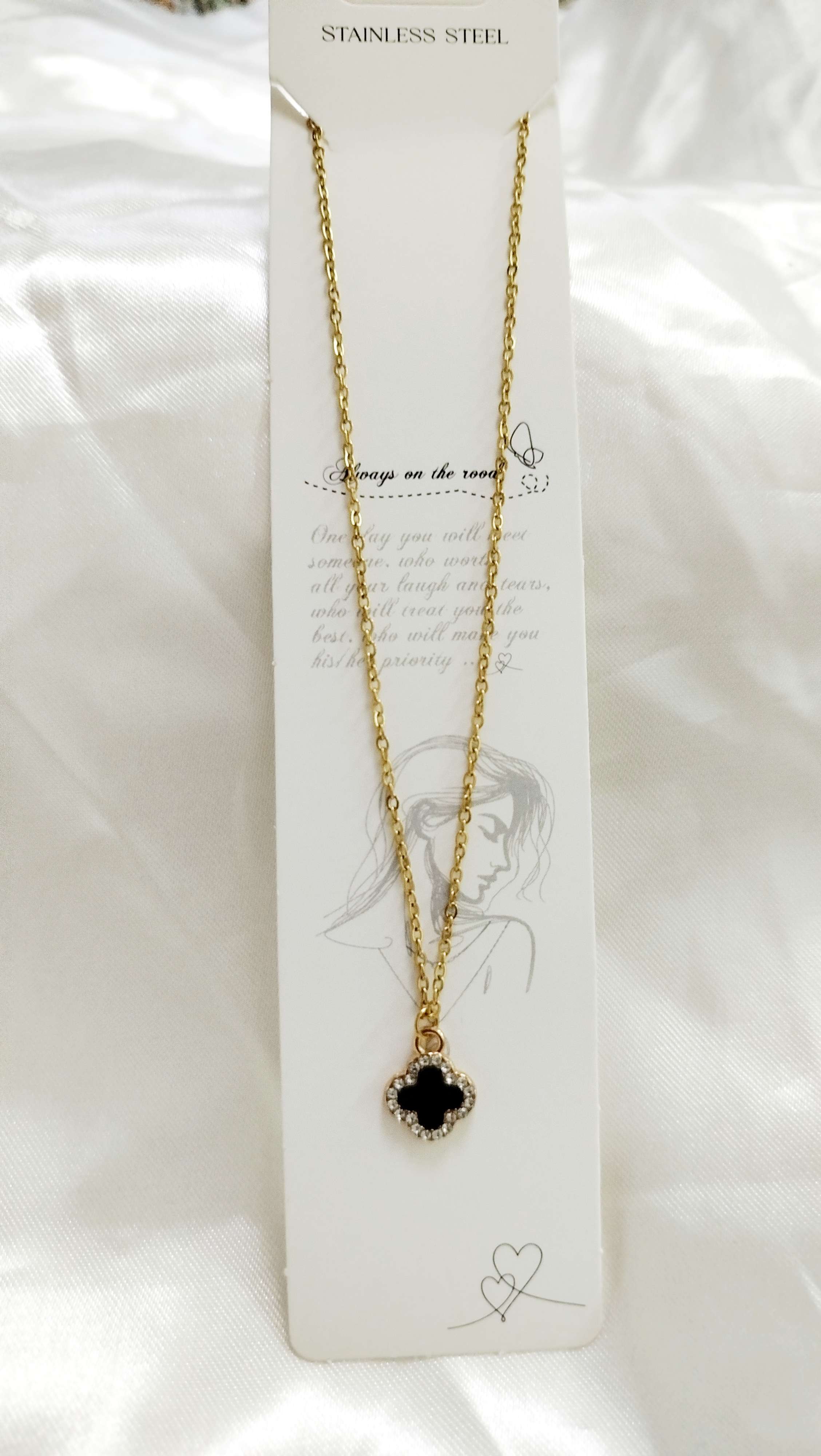گردنبند ونکلیف مشکی دور نگین طلایی زنانه استیل