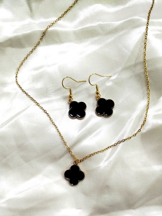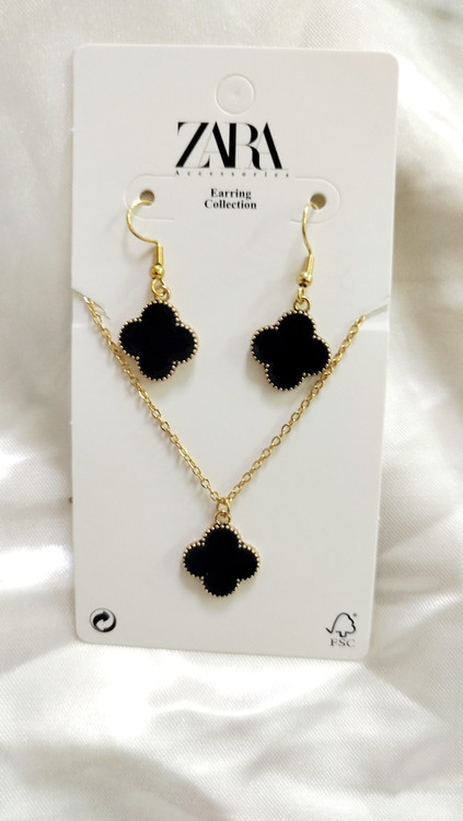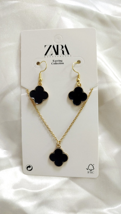 نیم ست ونکلیف مشکی طلایی استیل رنگ ثابت ضد حساسیت و آلرژی از برند زارا Zara accessories