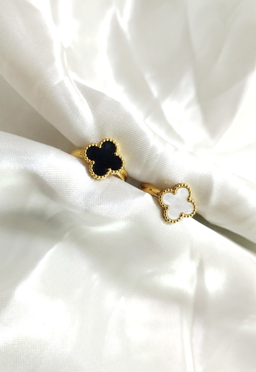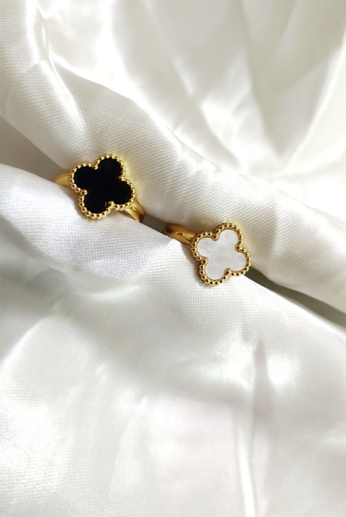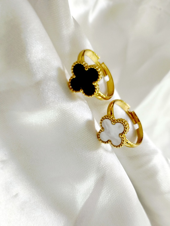 انگشتر طلایی ونکلیف استیل آبکاری طلا با سنگ طبیعی مرمر کلمبیایی مشکی و سفید در دو رنگ جذاب و پر طرفدار اروپایی