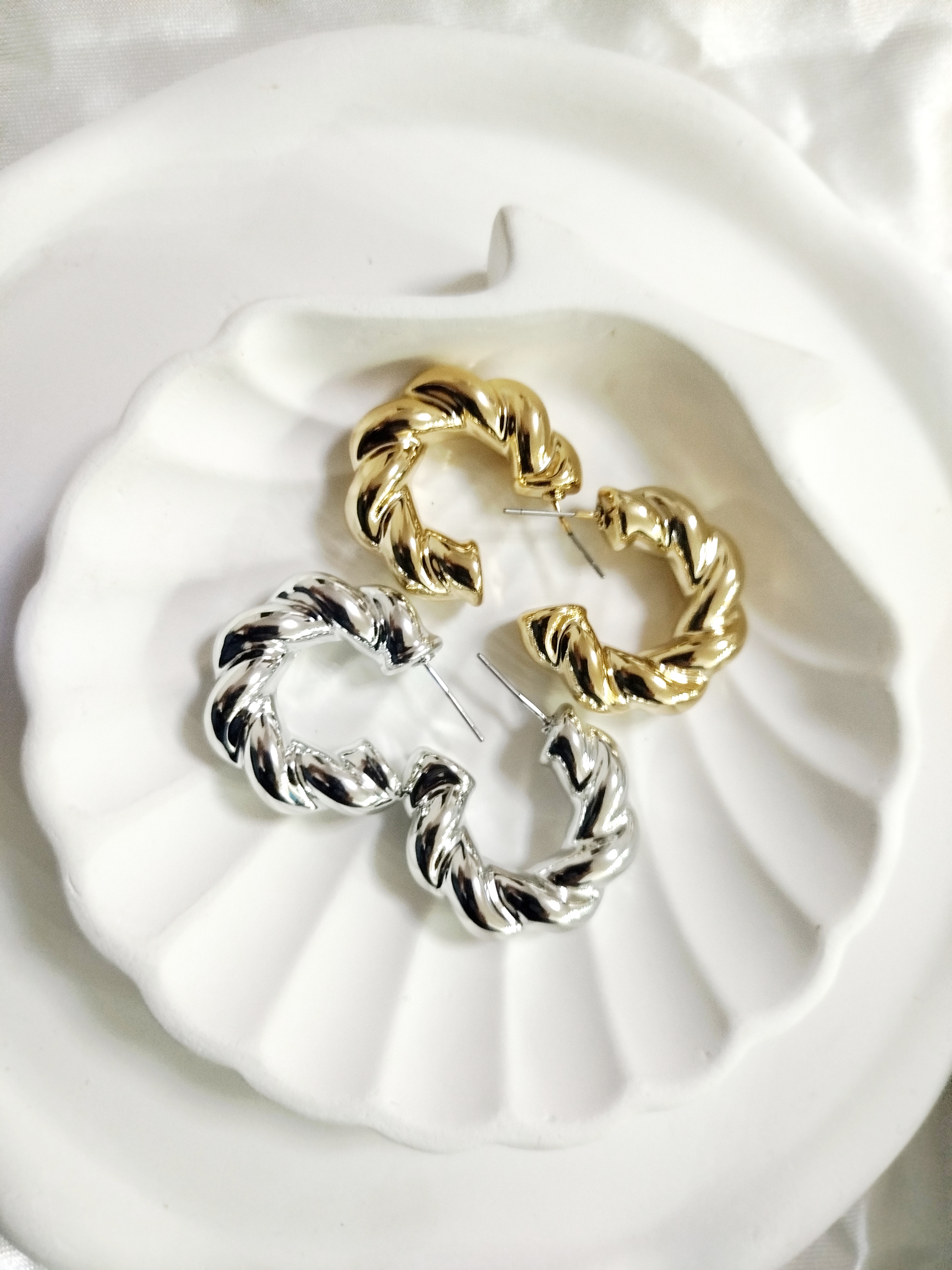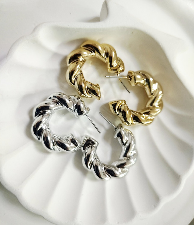 گوشواره فشن حلقه ای پیچی عریض سایز بزرگ لوکس طلایی و نقرهای مدرن کلاسیک رادیوم آبکاری طلا و نقره رنگ ثابت ضد حساسیت