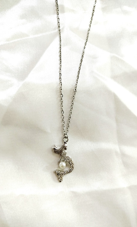گردنبند پری دریایی فول نگین استیل آبکاری نقره با زنجیر استیل دیپلمات نقره‌ای 50 سانت از برند سواروسکی