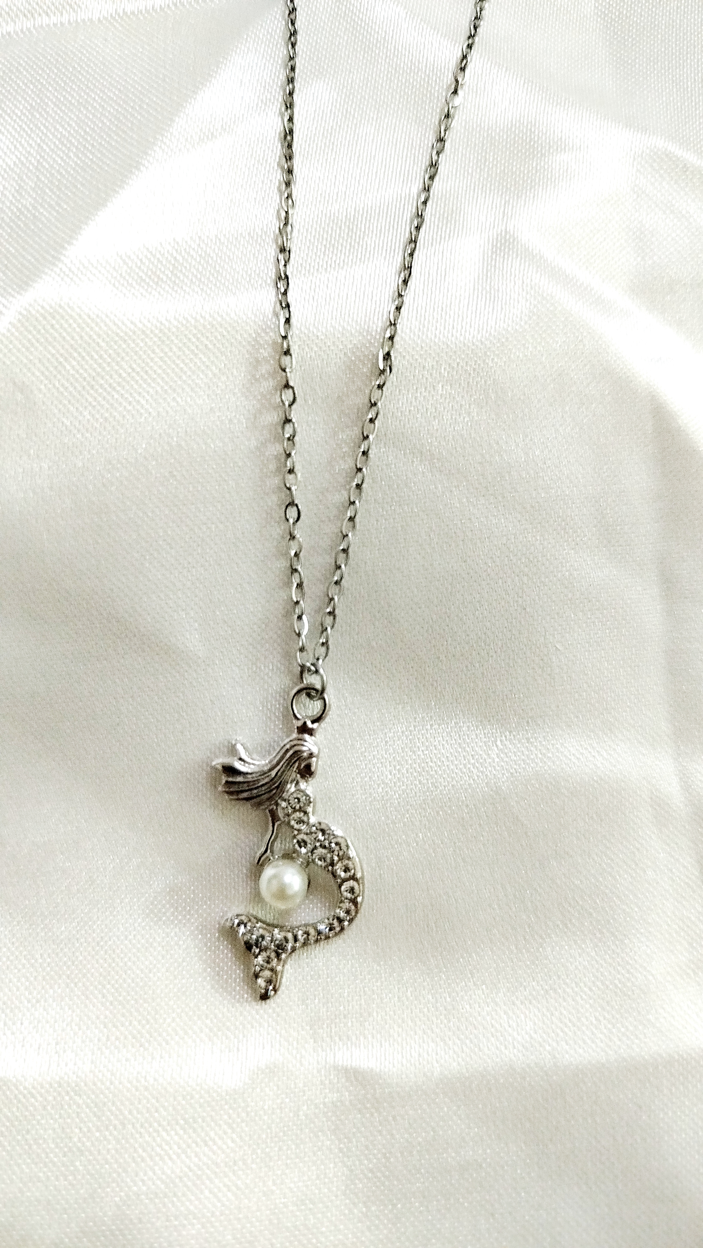 گردنبند پری دریایی فول نگین استیل آبکاری نقره با زنجیر استیل دیپلمات نقره‌ای 50 سانت از برند سواروسکی
