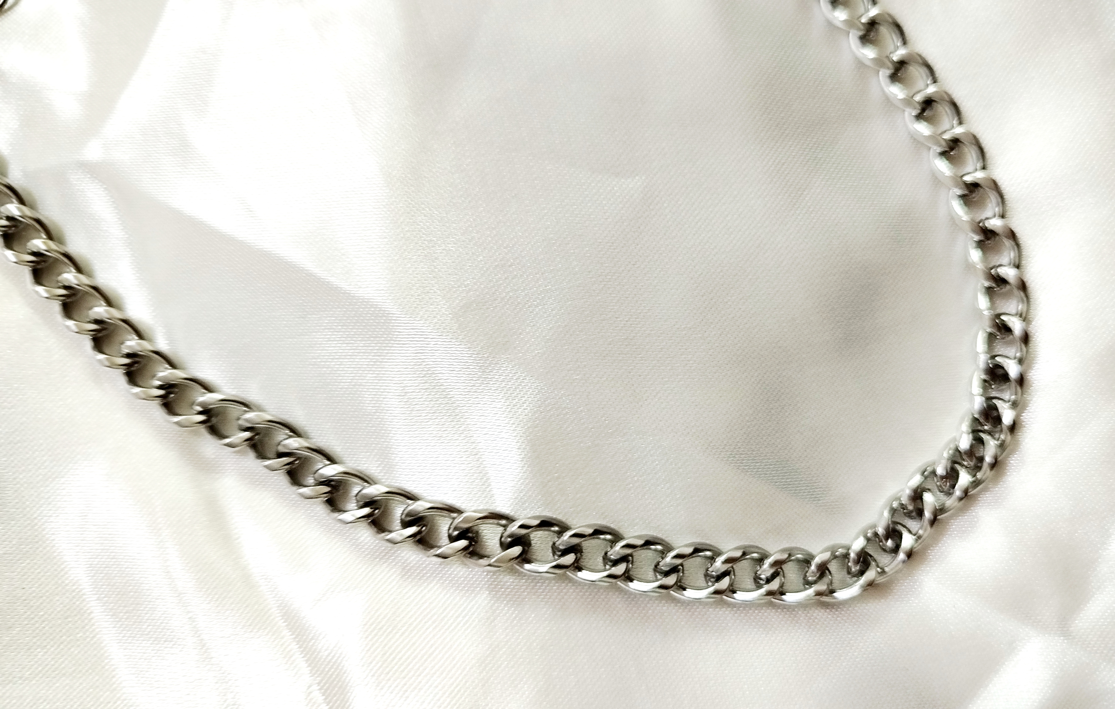 گردنبند کارتیر عریض نقره ای استیل آبکاری نقره رنگ ثابت ضد حساسیت و آلرژی 50سانت از برند سیکس ایتالیا