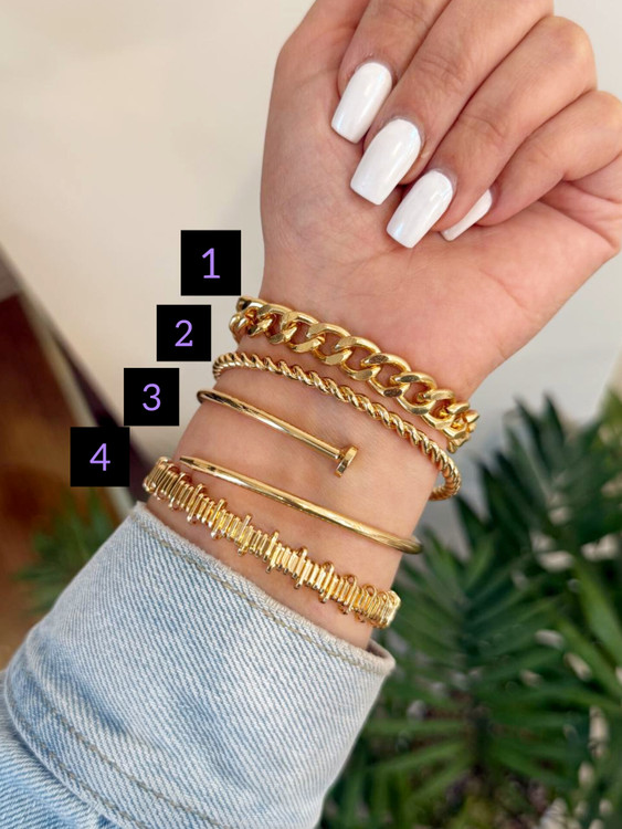 ✨ مدل ۳ | دستبند بنگل میخی لوکس طلایی