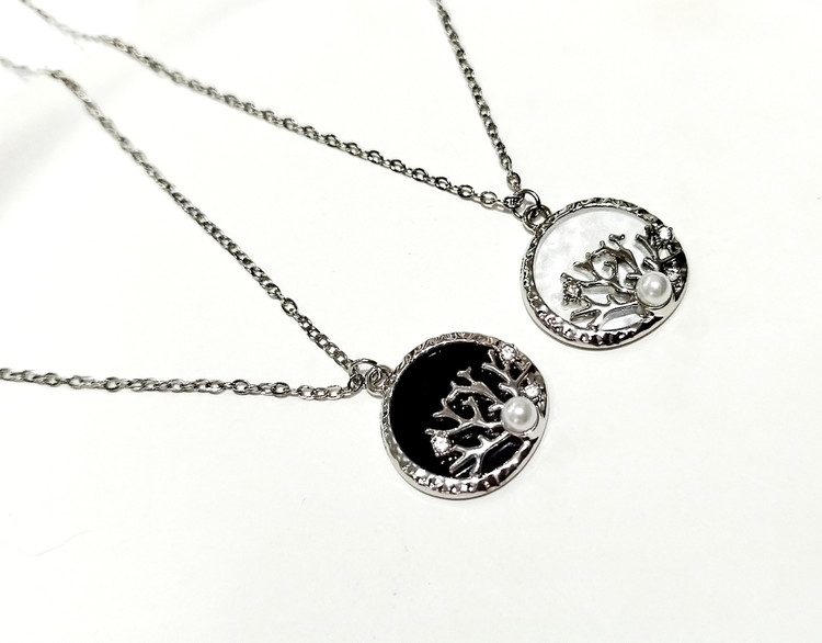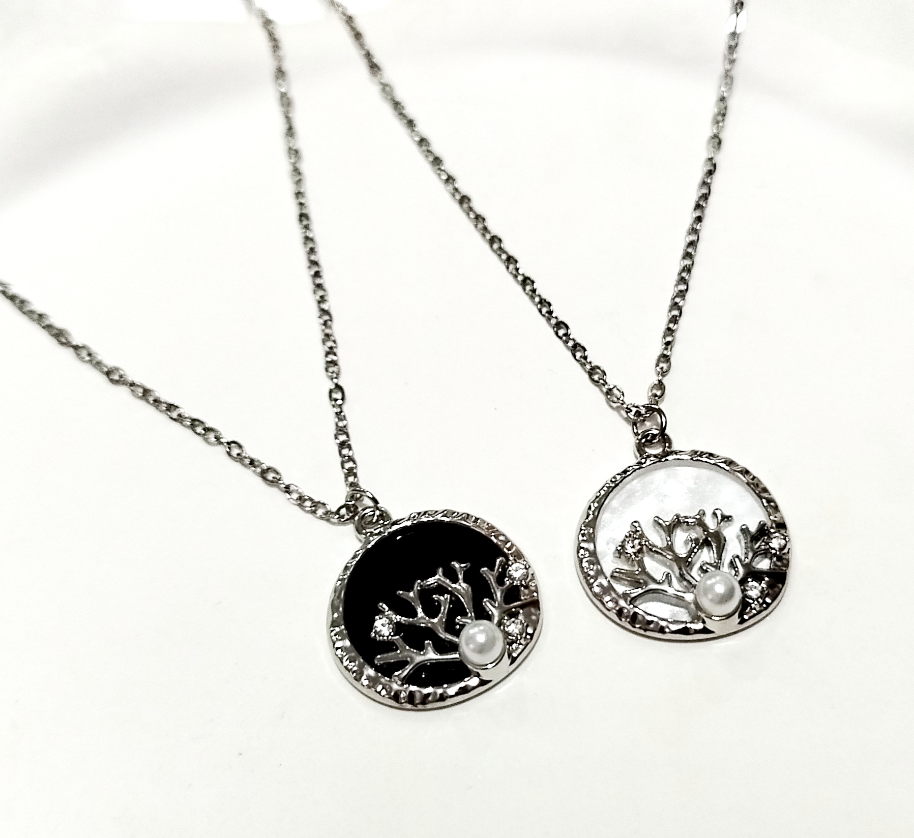 گردنبند کاپلی، دوستی درخت زندگی رویایی طرحی بسیار جذاب و خاص نوستالژی جنس استیل آبکاری نقره رنگ ثابت ضد حساسیت و آلرژی