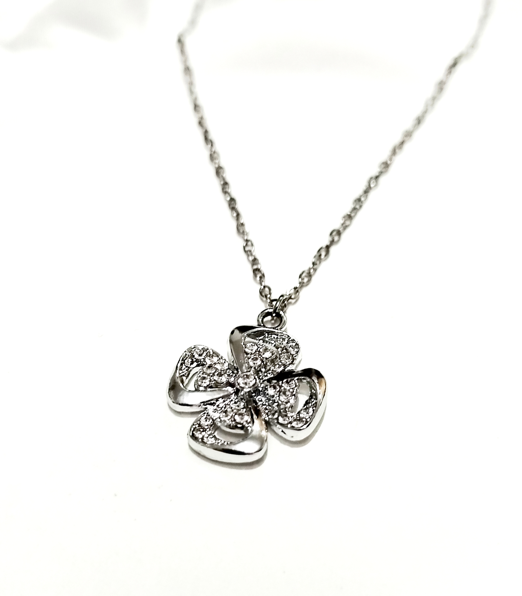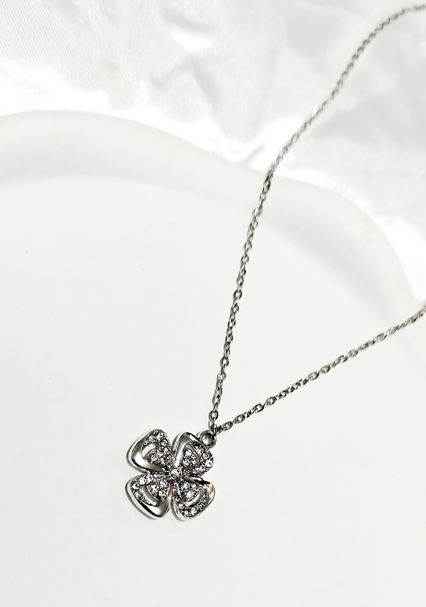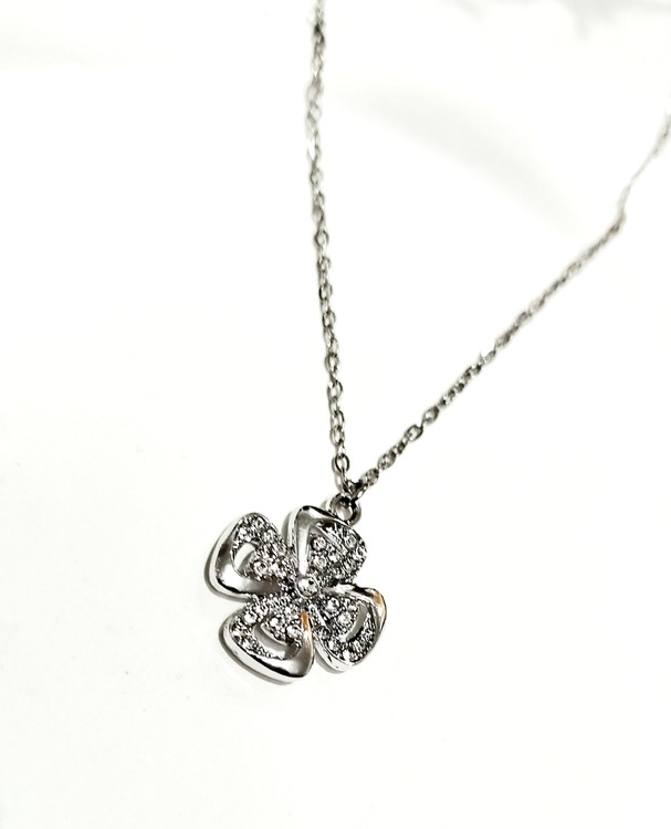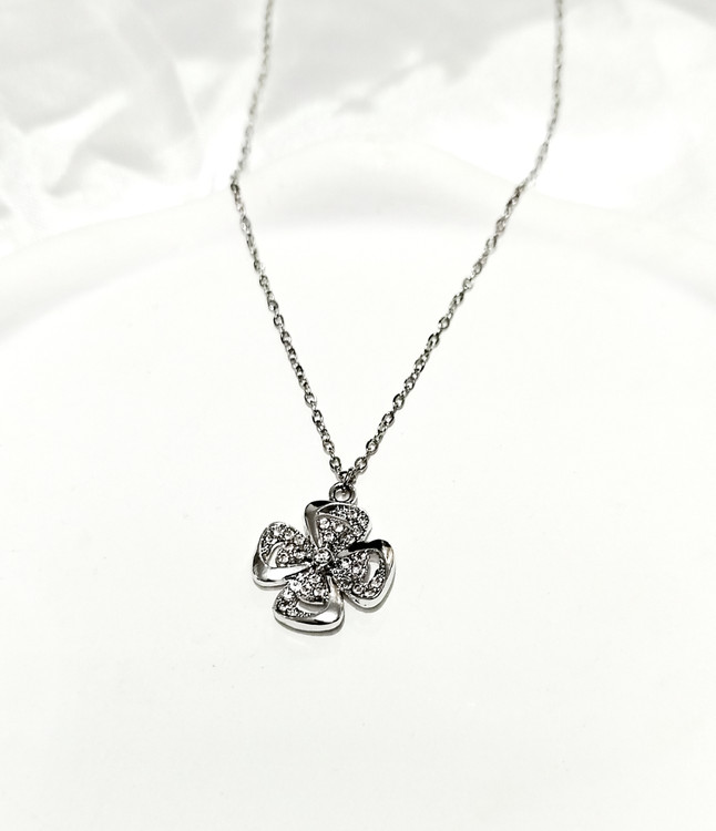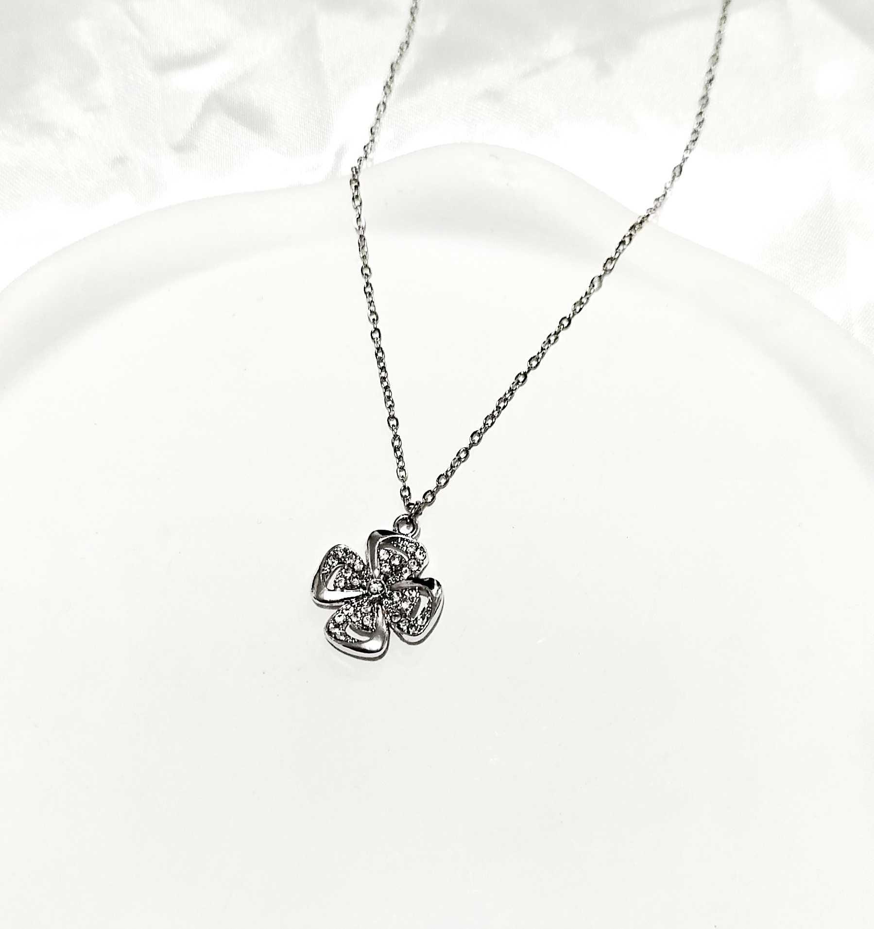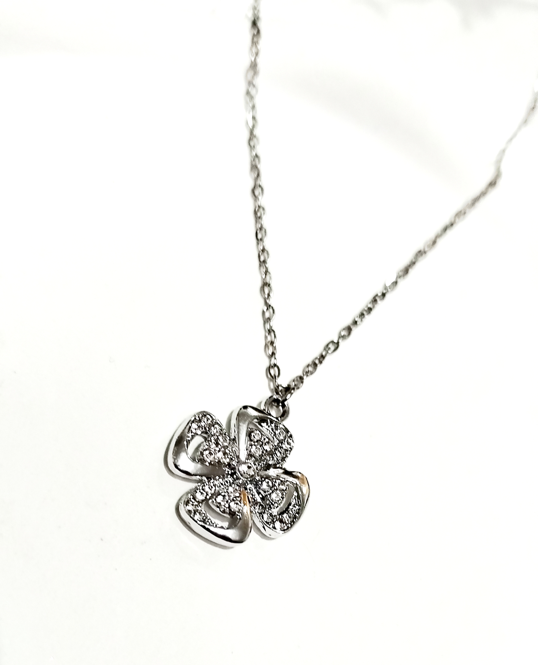 گردنبند شبدر چهار برگ استیل آبکاری رادیوم رنگ ثابت ضد حساسیت و آلرژی از برند زارا ایتالیا