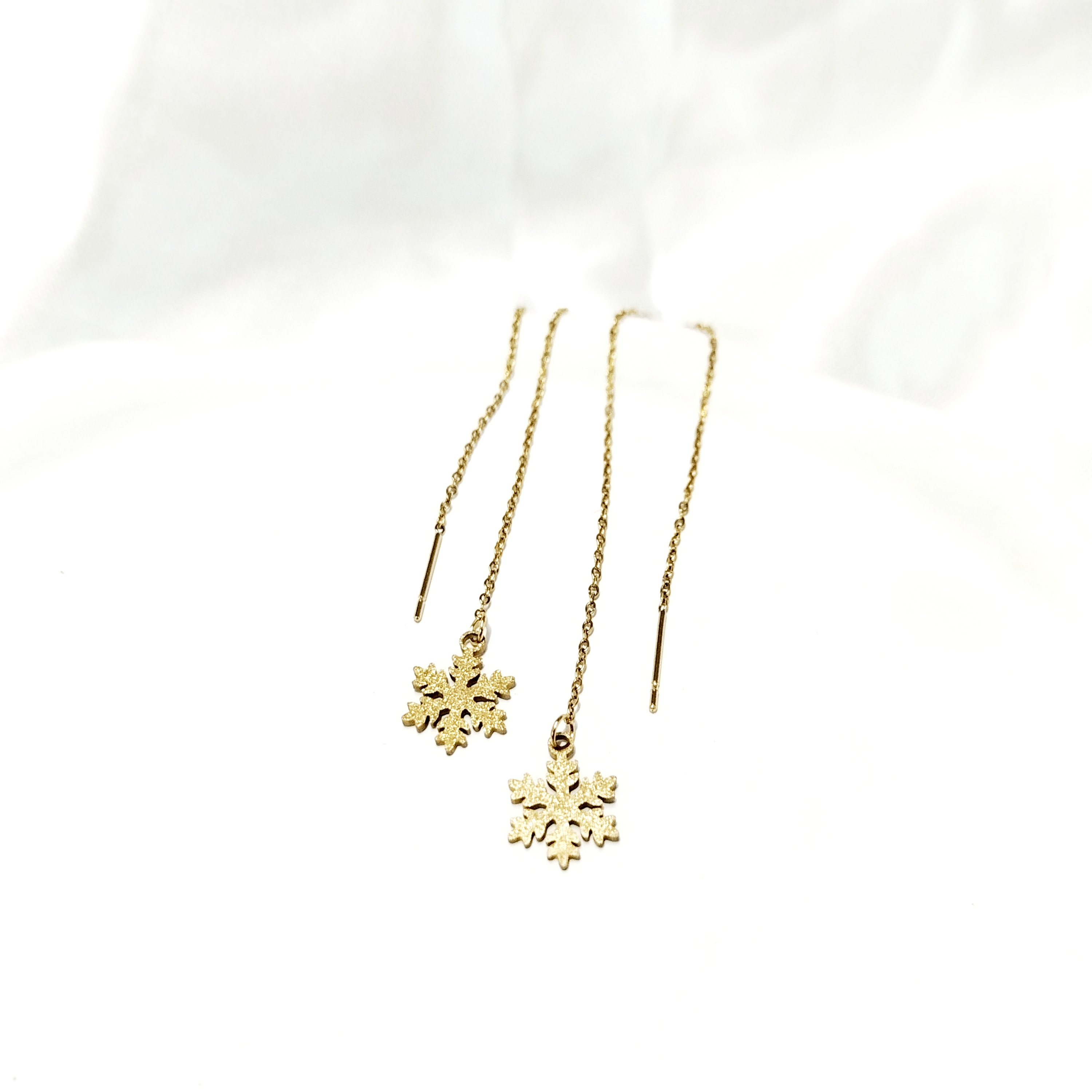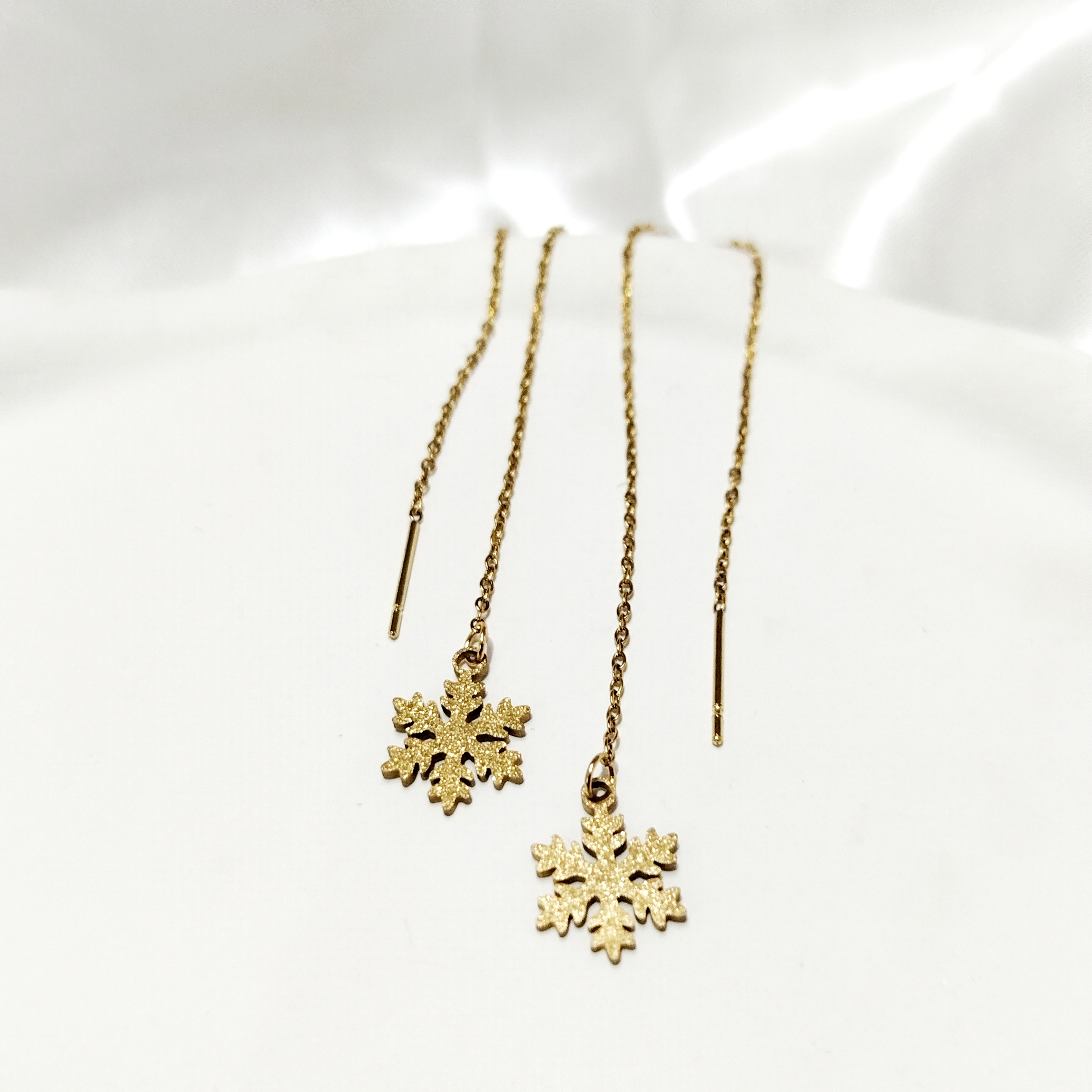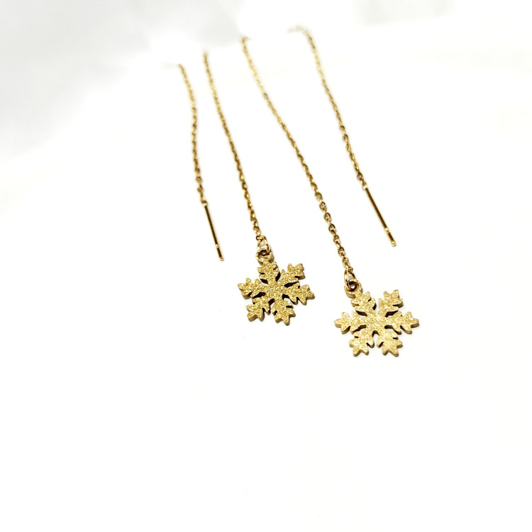 گوشواره بخیه ای دانه برف شنی طلایی استیل آبکاری طلا رنگ ثابت ضد حساسیت و آلرژی