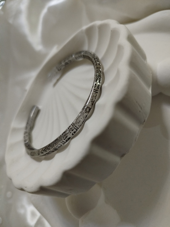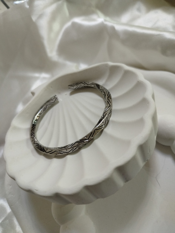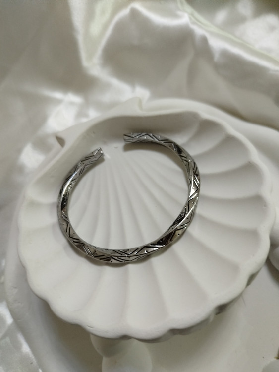 دستبند بنگل هخامنشی پیچی خلخال خط میخی ایرانی نویس استیل نقره ای رنگ ثابت ضد حساسیت و آلرژی با بهترین متریال استیل اروپایی