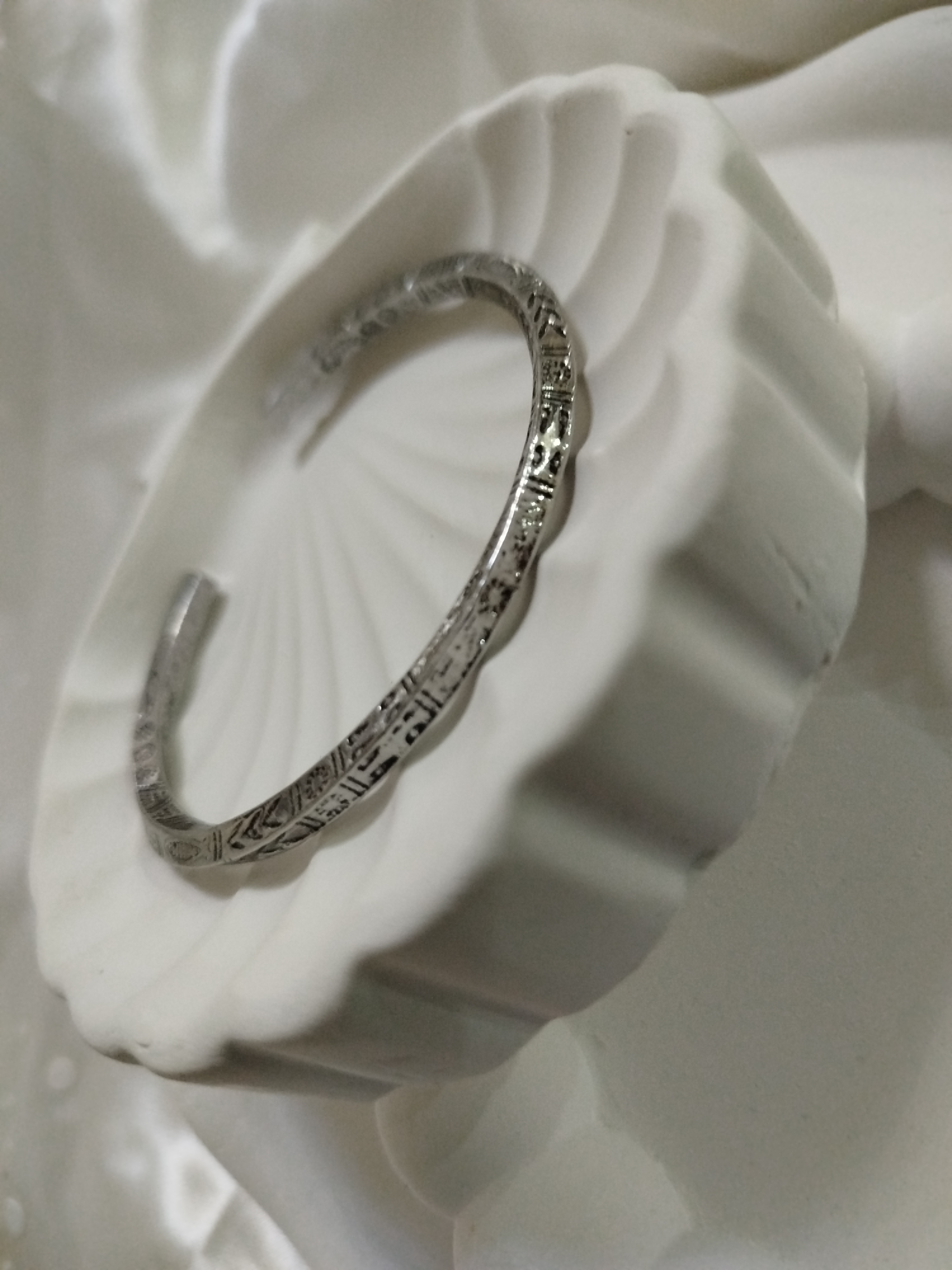 دستبند بنگل هخامنشی پیچی خلخال خط میخی ایرانی نویس استیل نقره ای رنگ ثابت ضد حساسیت و آلرژی با بهترین متریال استیل اروپایی