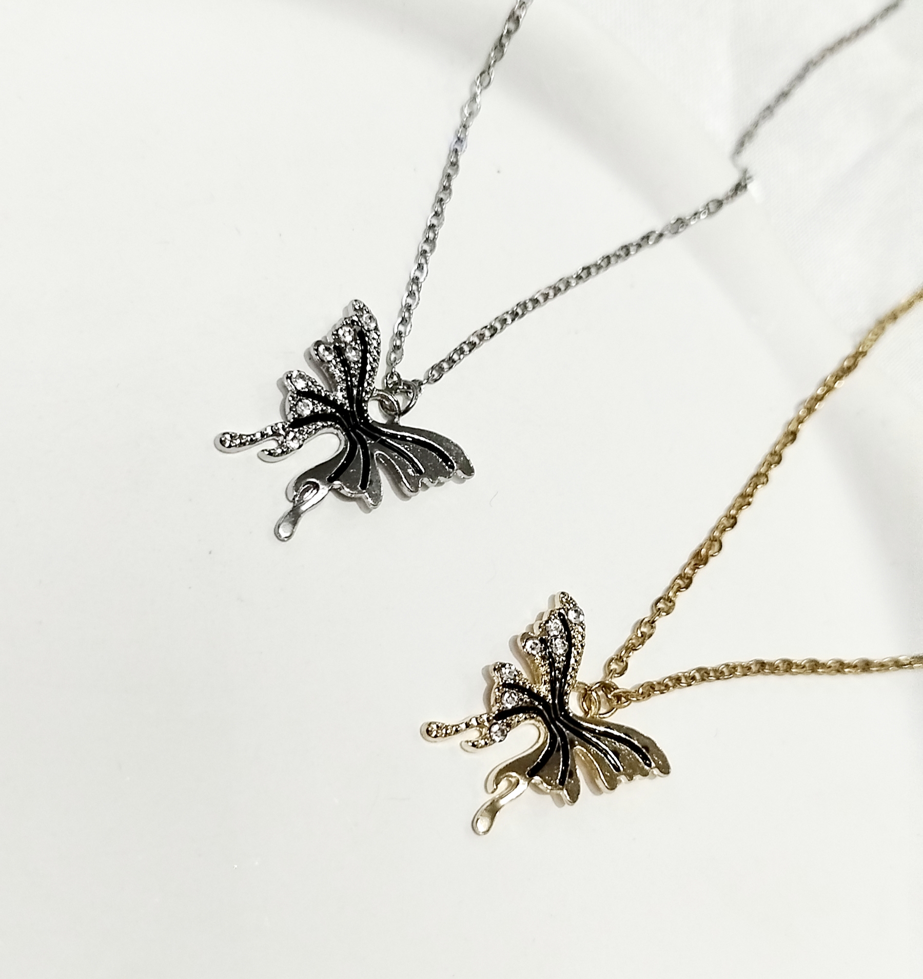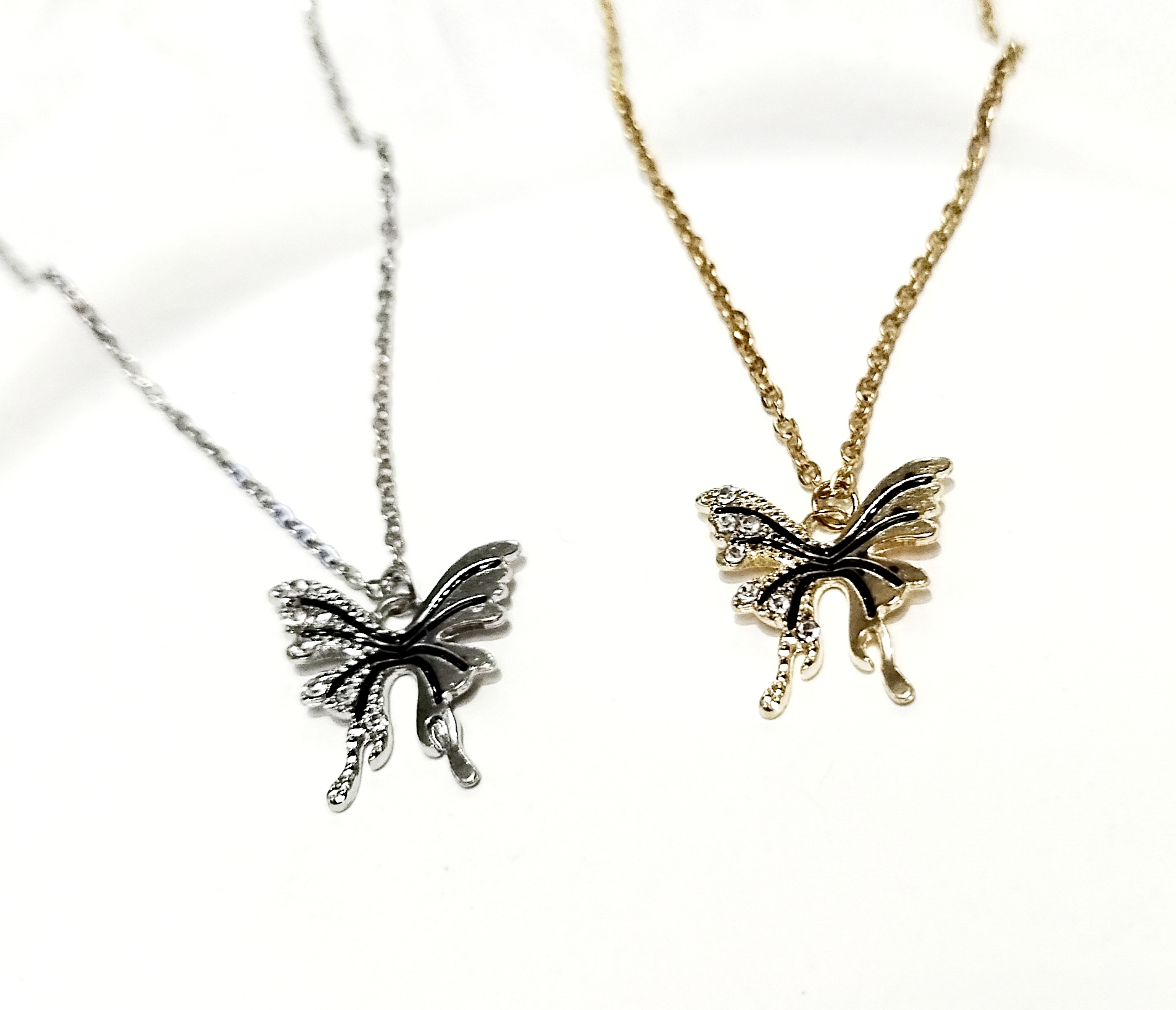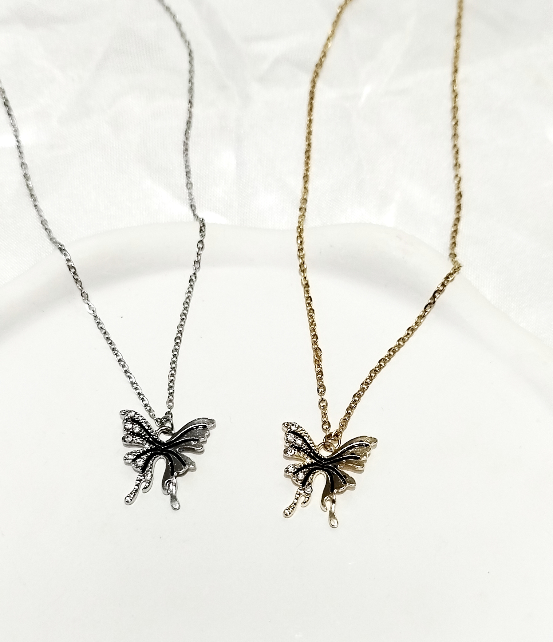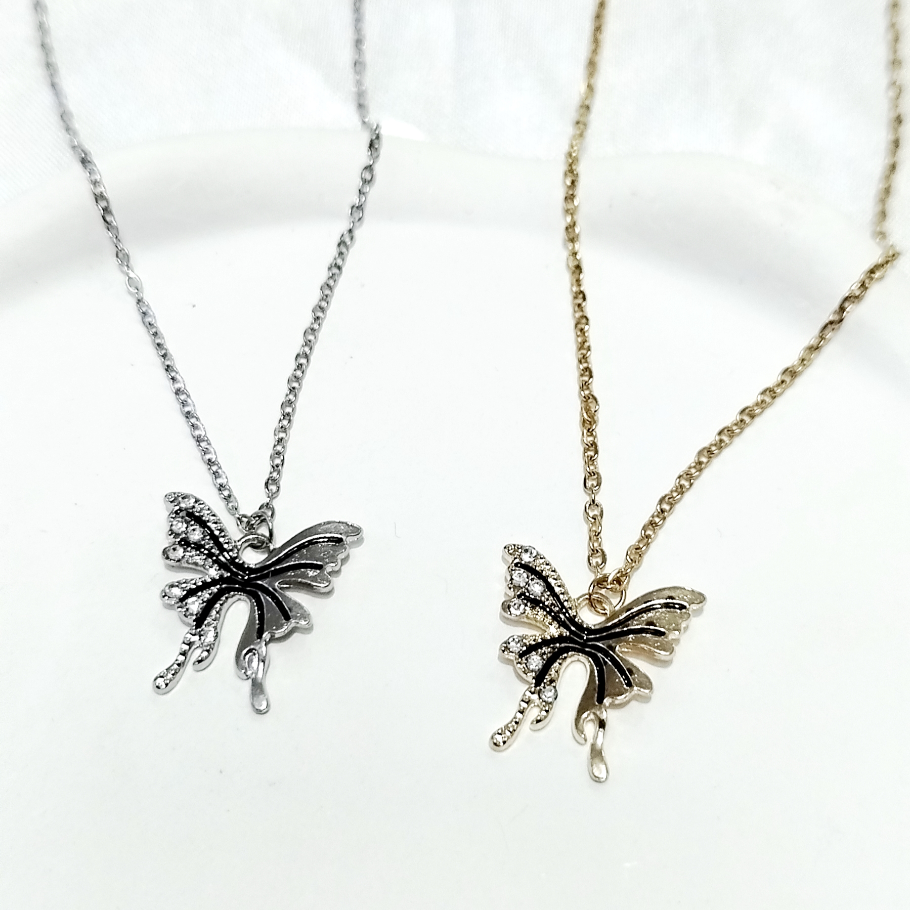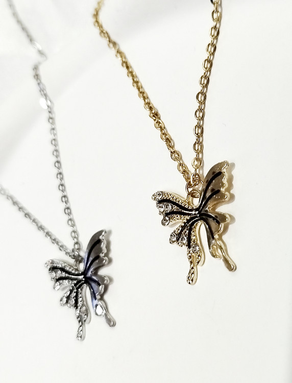گردنبند شاپرک درشت نگین دار طلایی و نقرهای