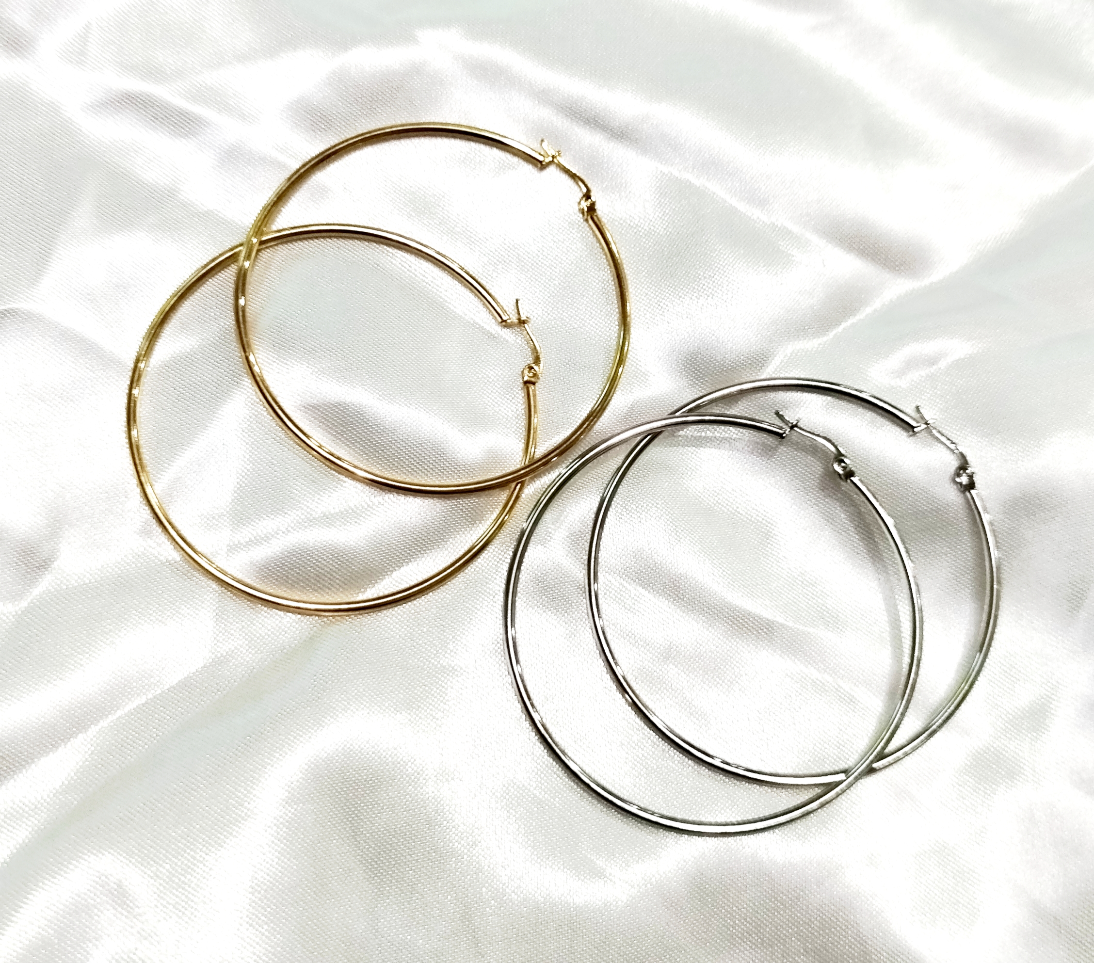 گوشواره حلقه ای بزرگ سایز 6 استیل آبکاری طلا و نقره رنگ ثابت ضد حساسیت و آلرژی از برند Zara accessories