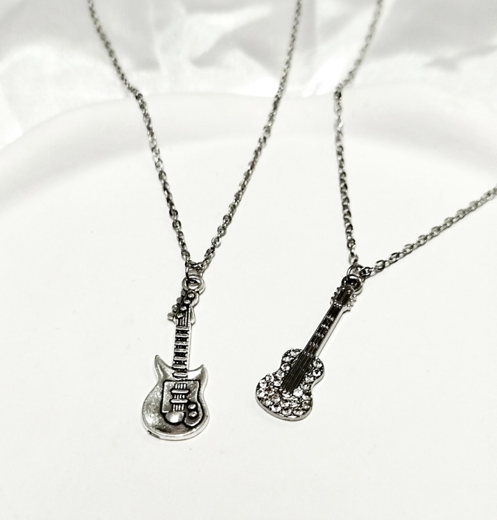 گردنبند گیتار استیل آبکاری رادیوم ضد حساسیت و آلرژی با زنجیر ۴۵ سانت دیپلمات
