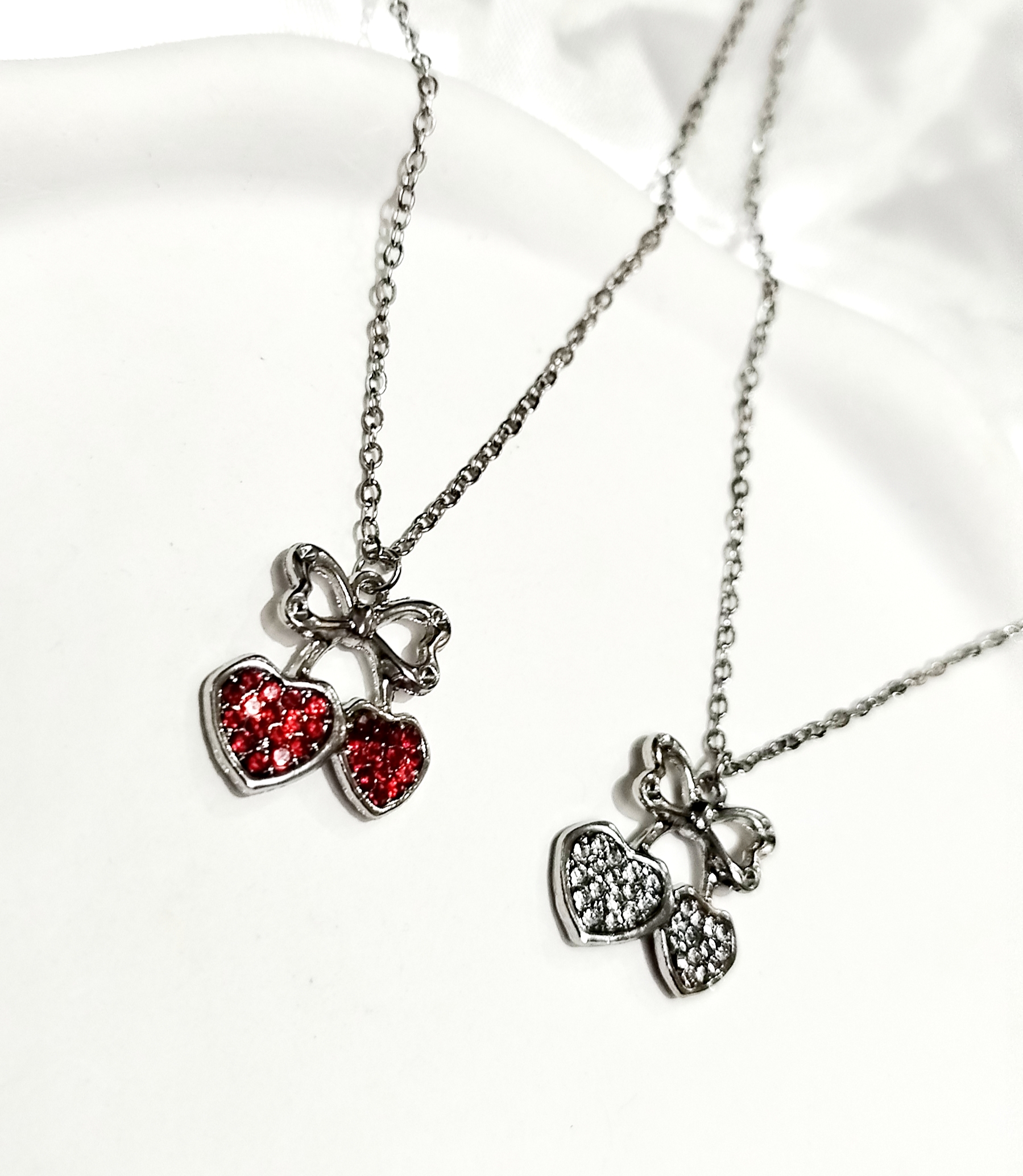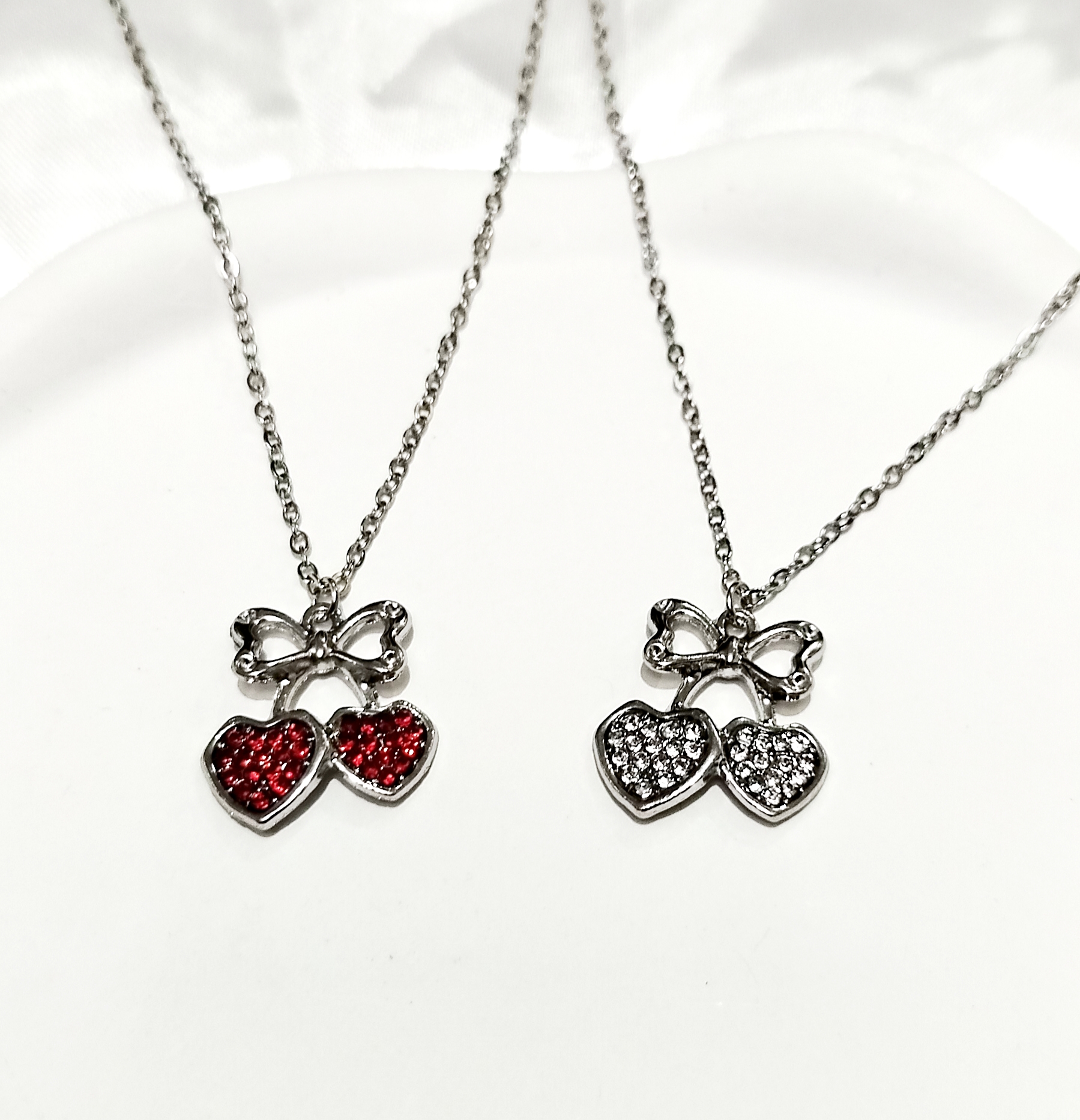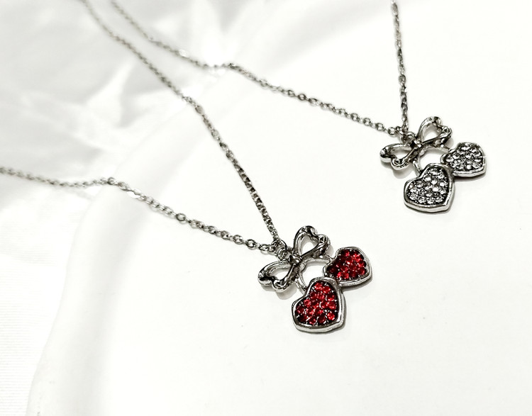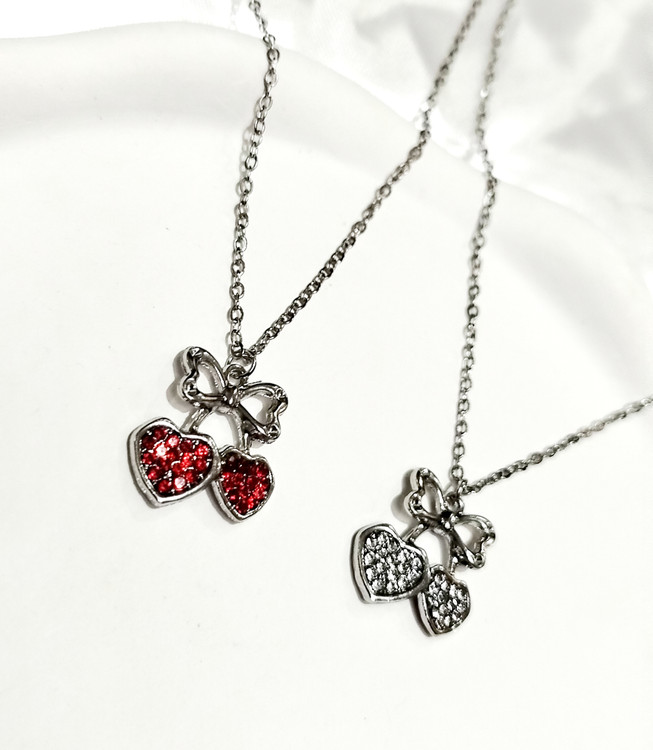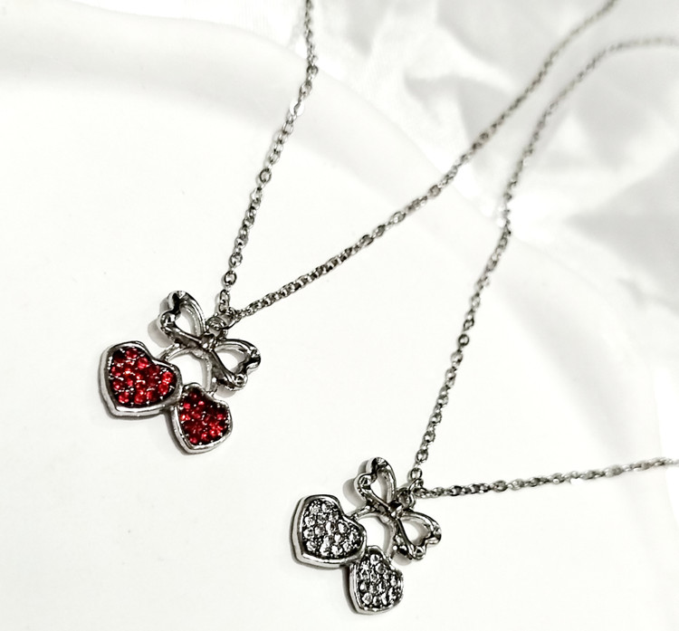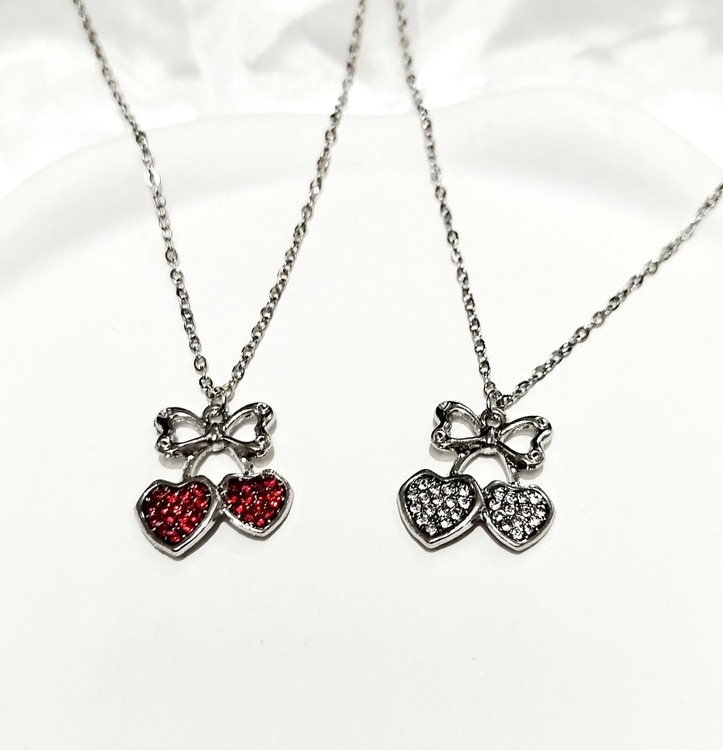 گردنبند ترند گیلاس قلبی فول نگین بالا پاپیون استیل با زنجیر 45 سانت دیپلمات