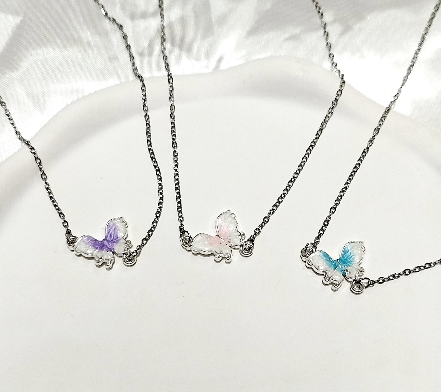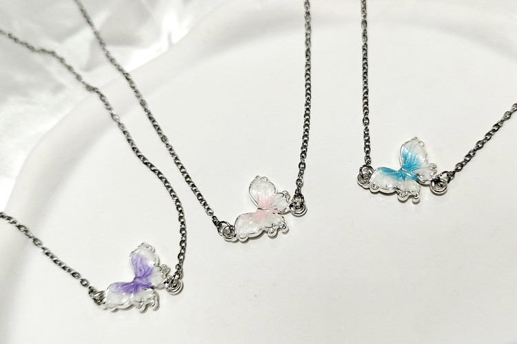 گردنبند پروانه پاستیلی جادویی در سه رنگ ترند استیل میناکاری شده از برند زارا اروپا