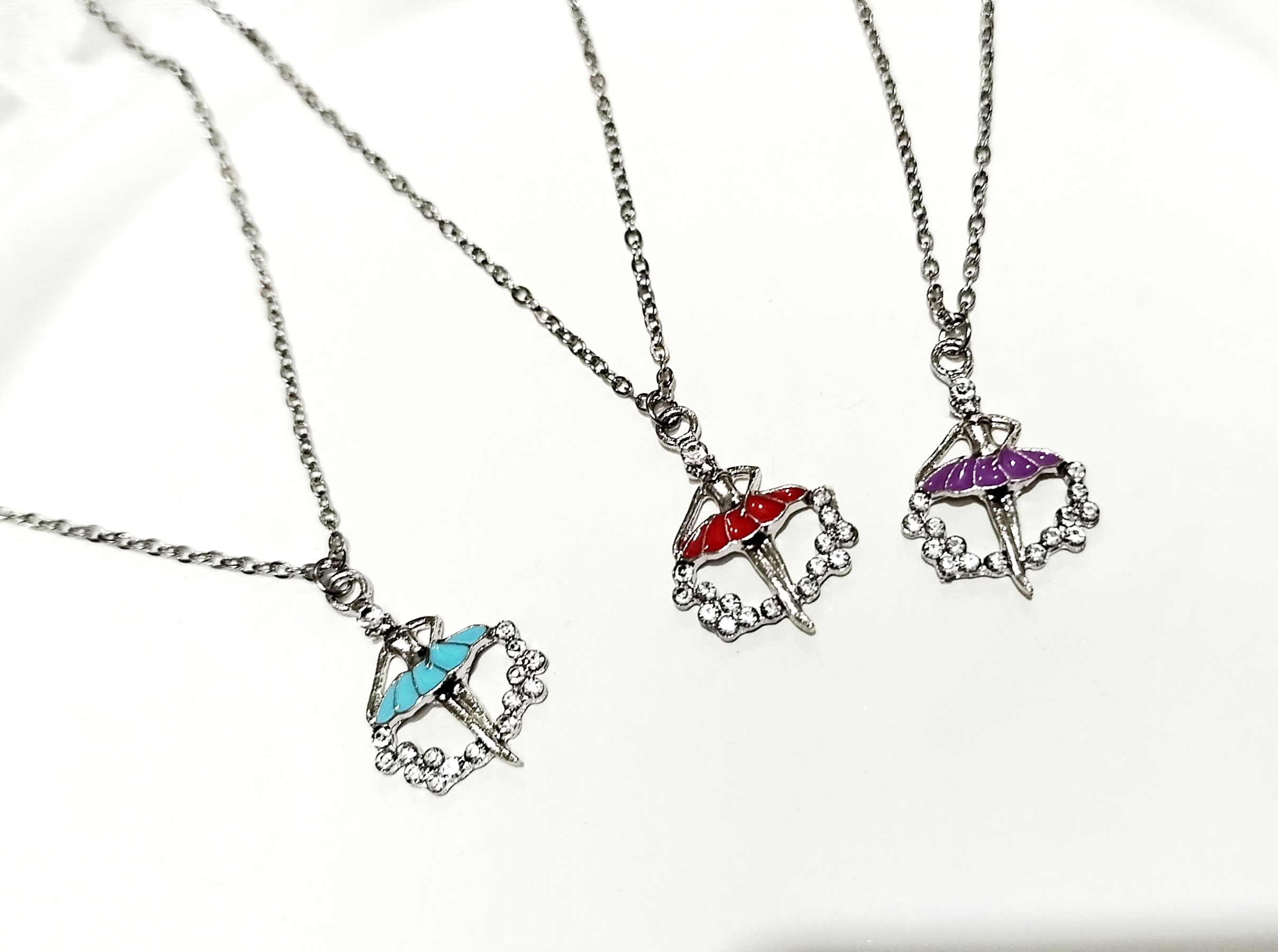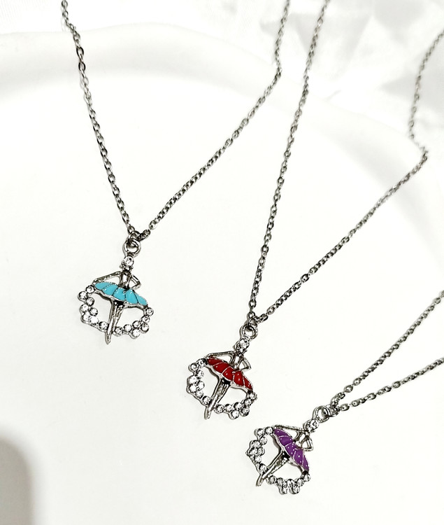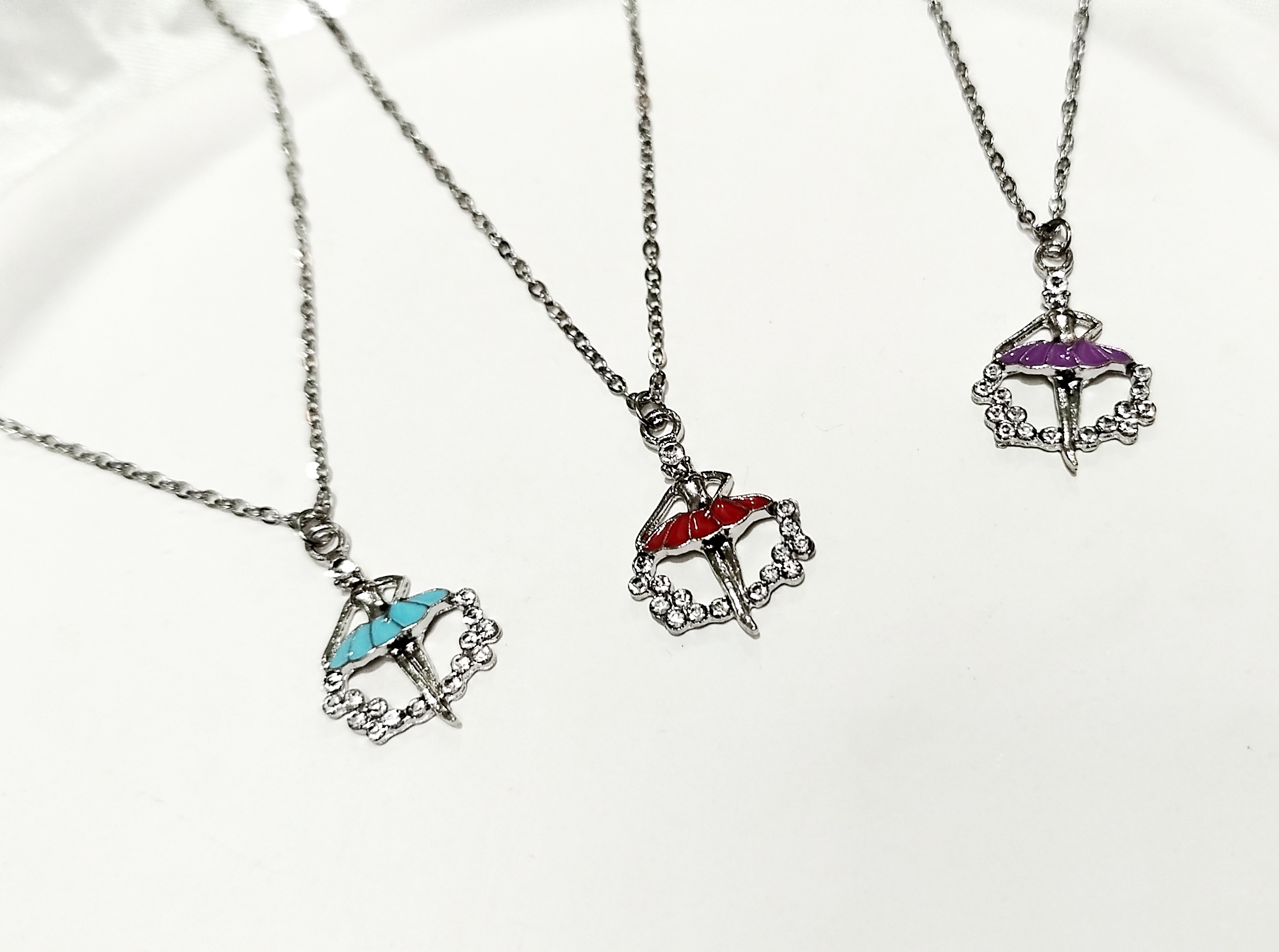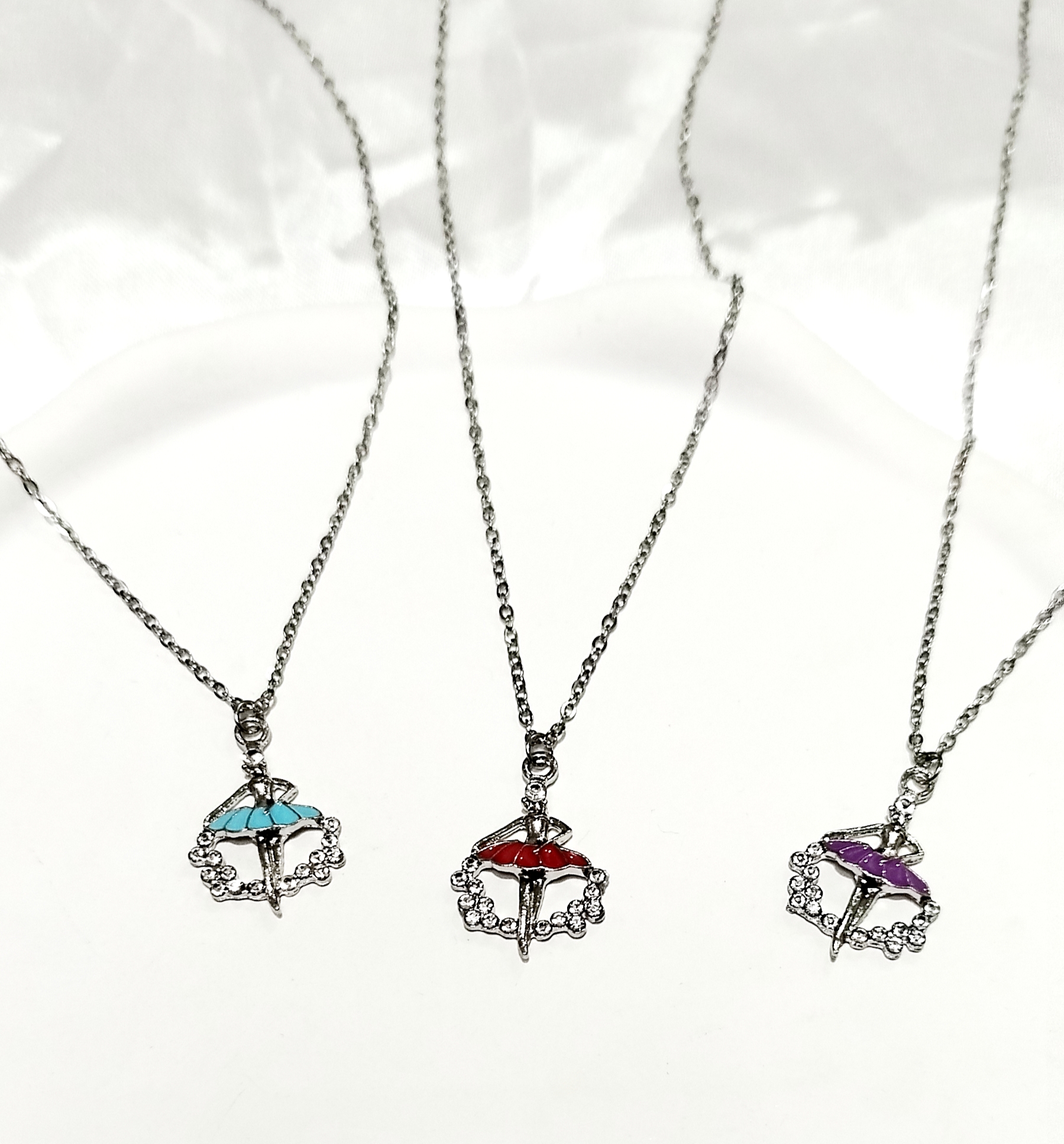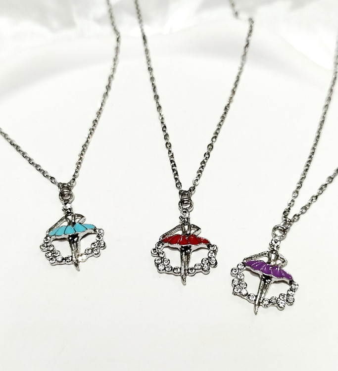 گردنبند دختر بالرین استیل میناکاری شده نگین دار لوکس ترند با زنجیر دیپلمات استیل نقرهای 45 سانت