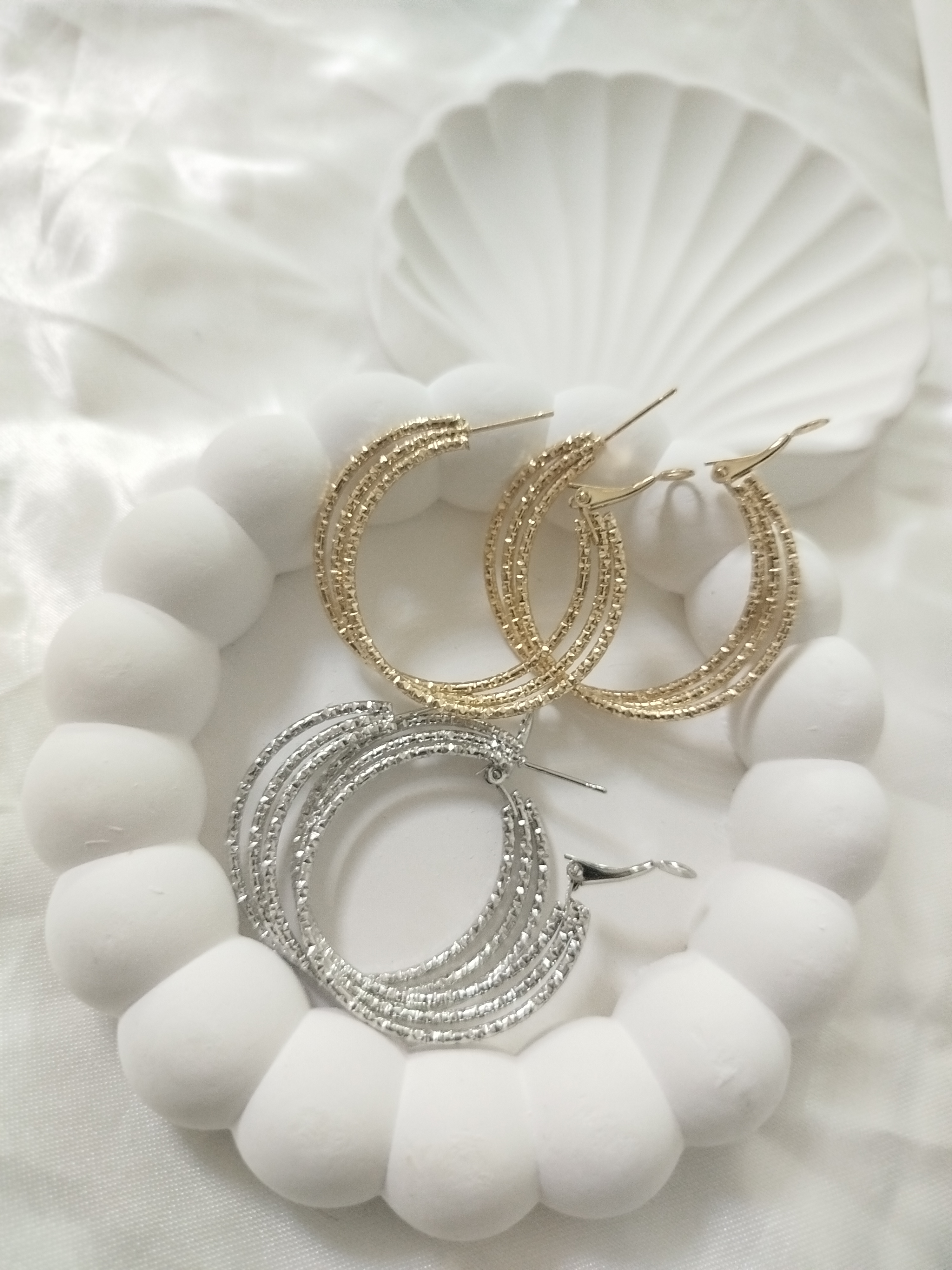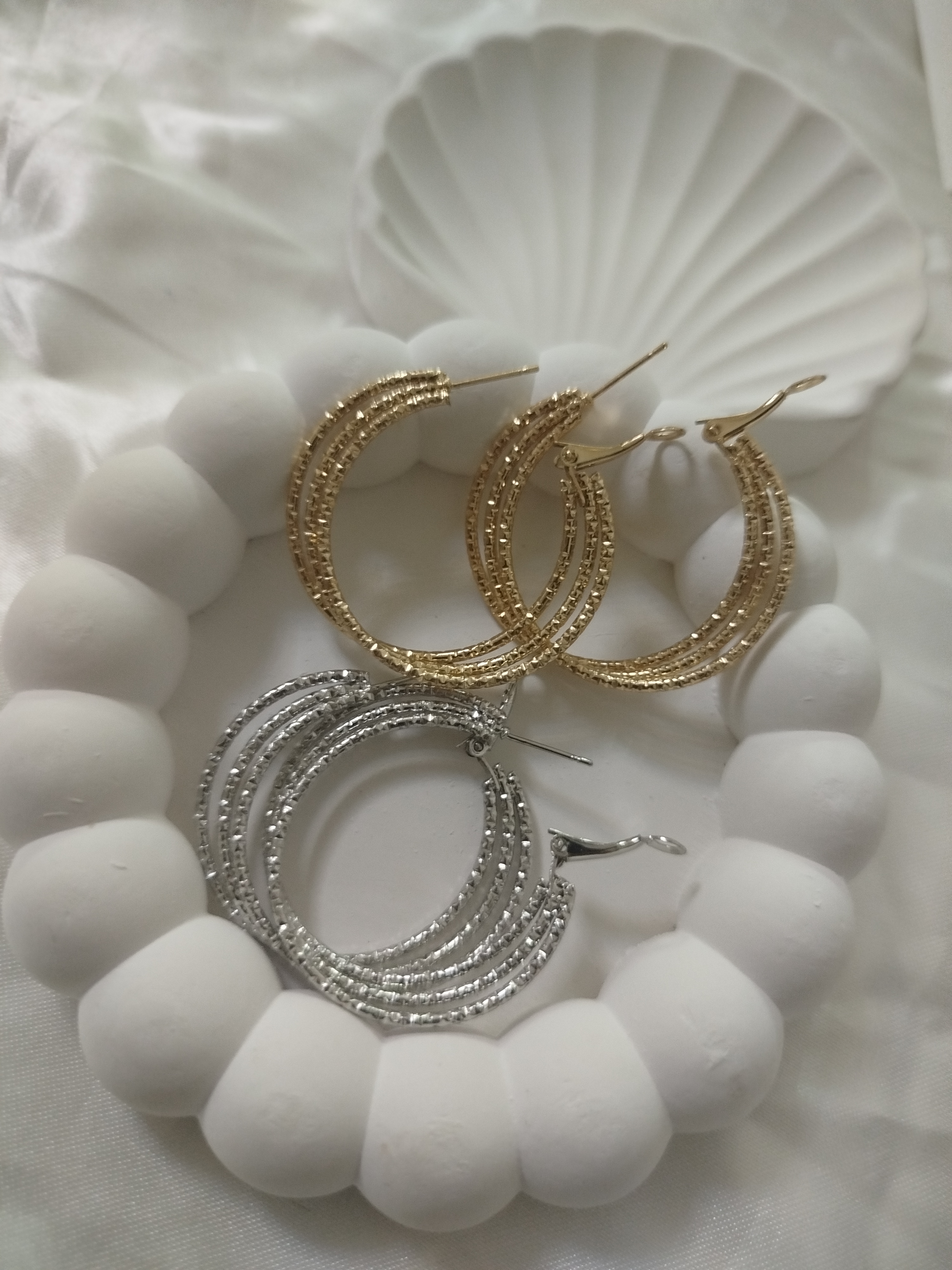 گوشواره حلقهای سه لاین ، سه رج شاینی براق استیل ضد حساسیت و آلرژی فوق العاده لوکس و جذاب