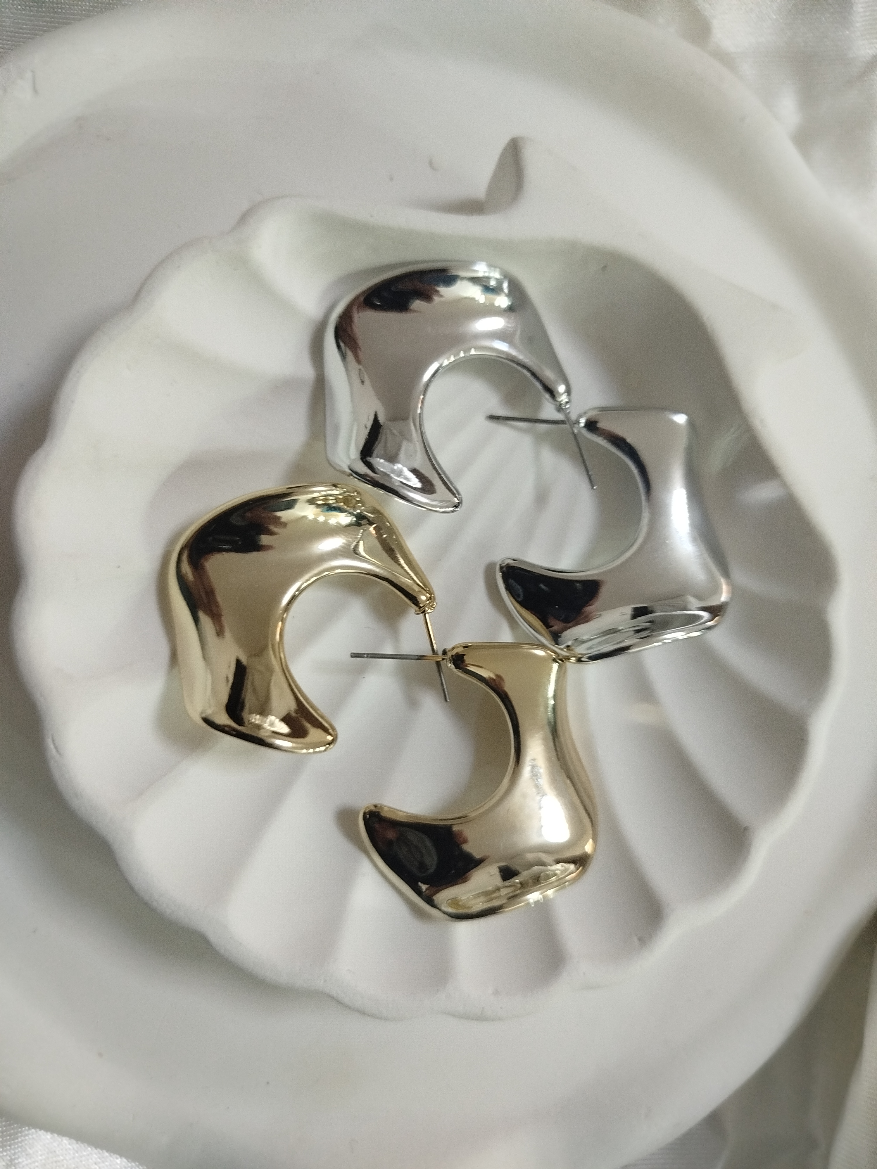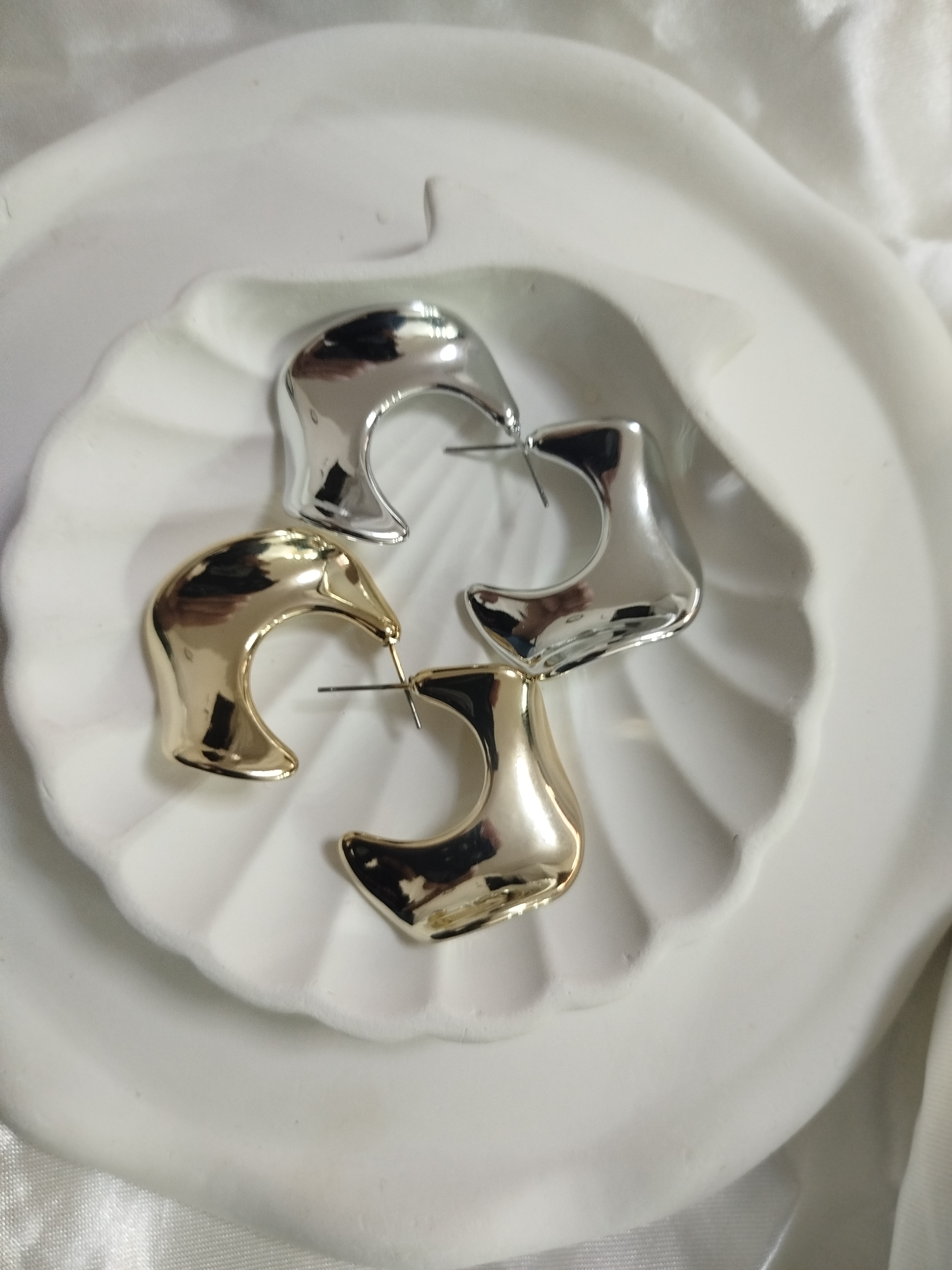 گوشواره فشن مدل آوانگارد Zara سایز بزرگ سوپر لوکس براق آبکاری طلا