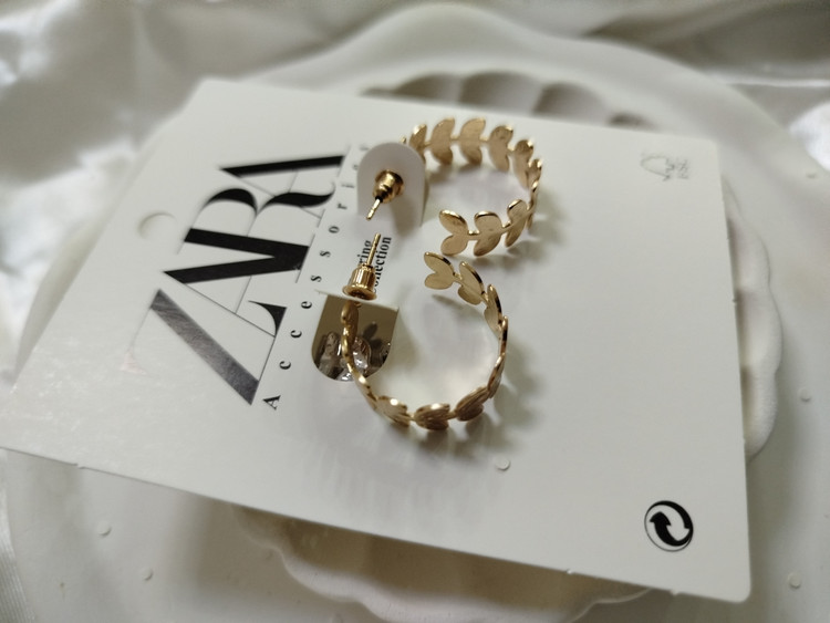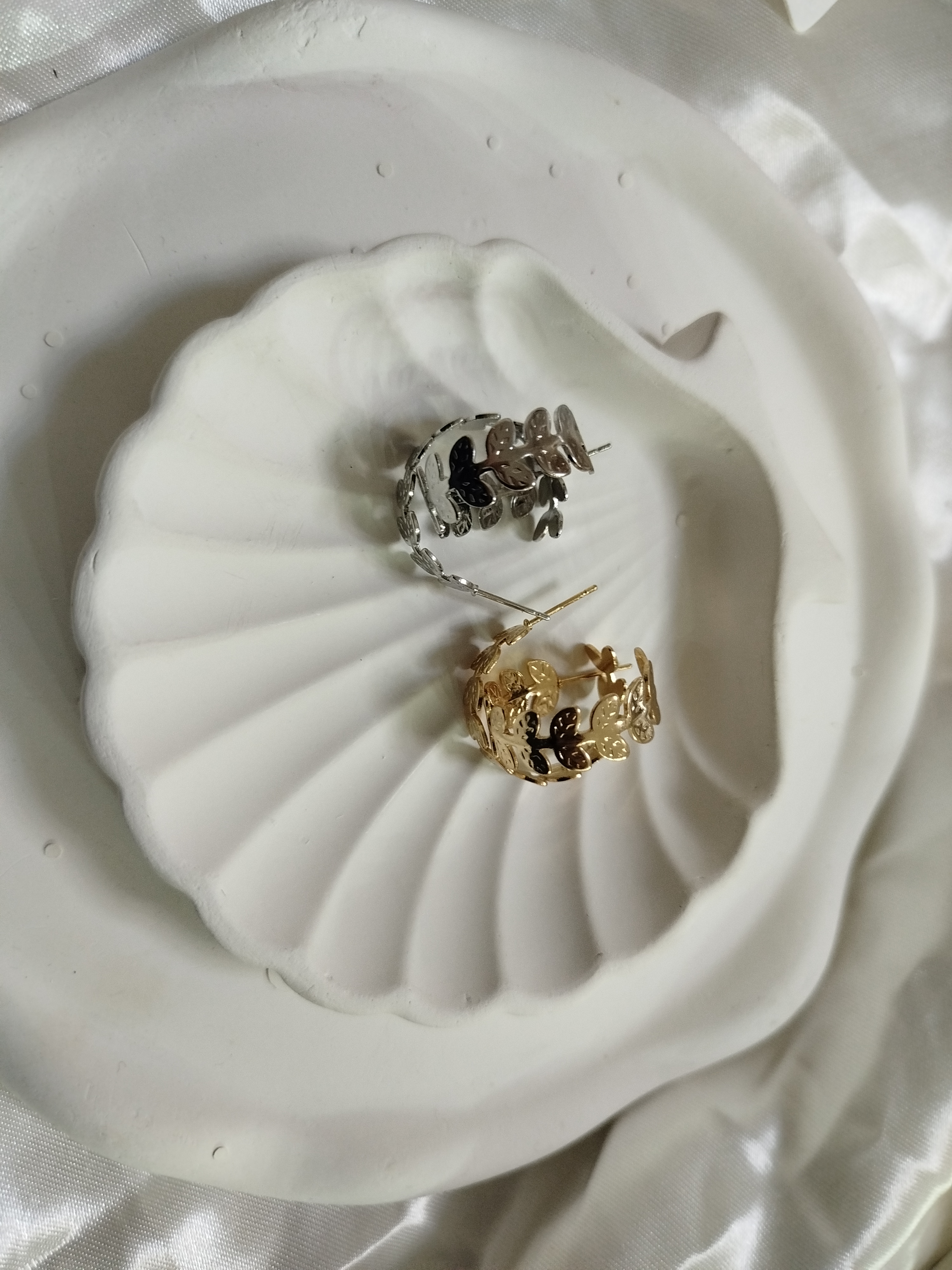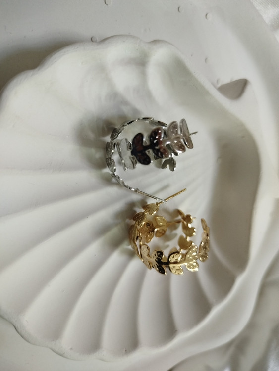 گوشواره برگی حلقه ای تاج یونانی استیل رنگ ثابت ضد حساسیت و آلرژی