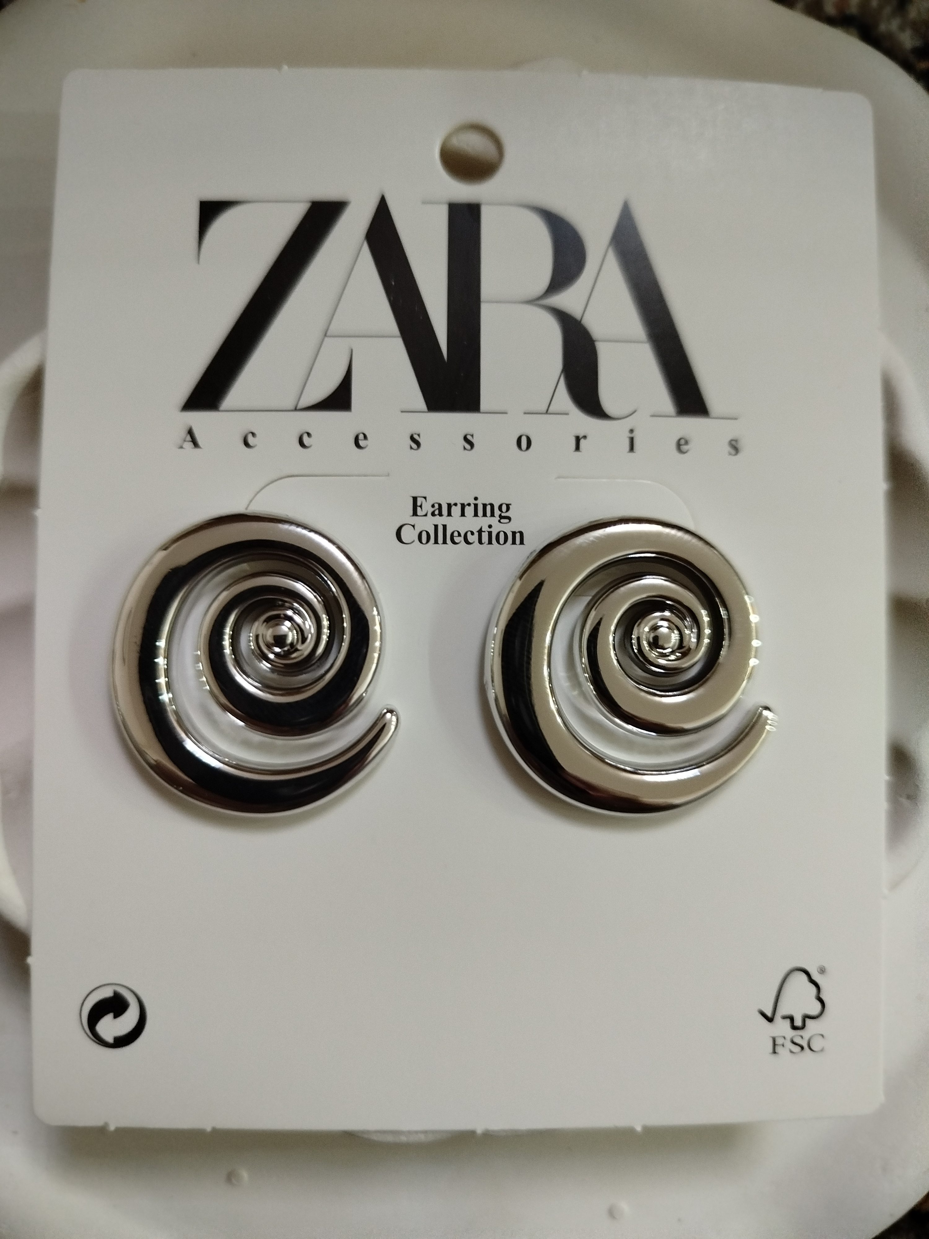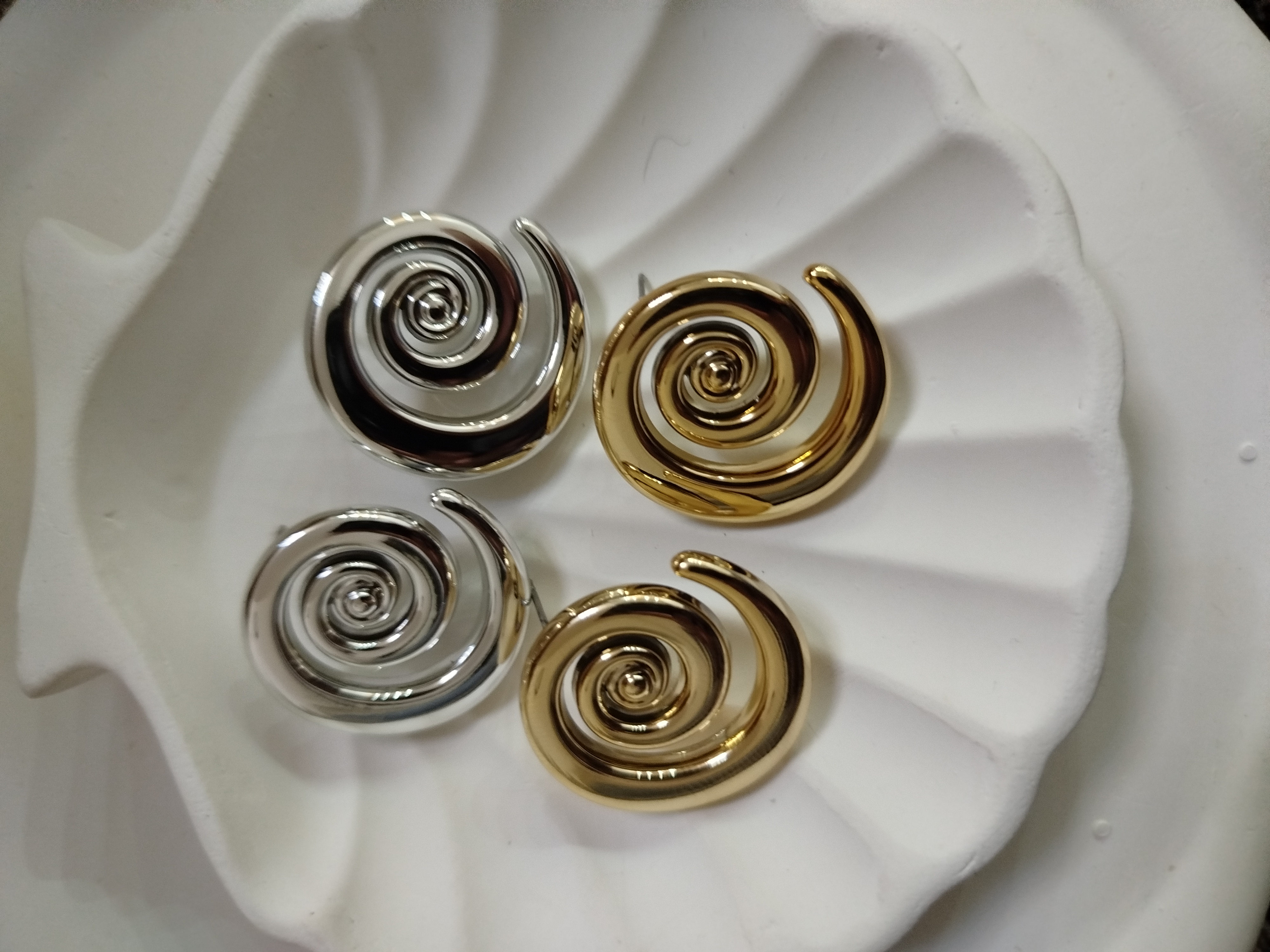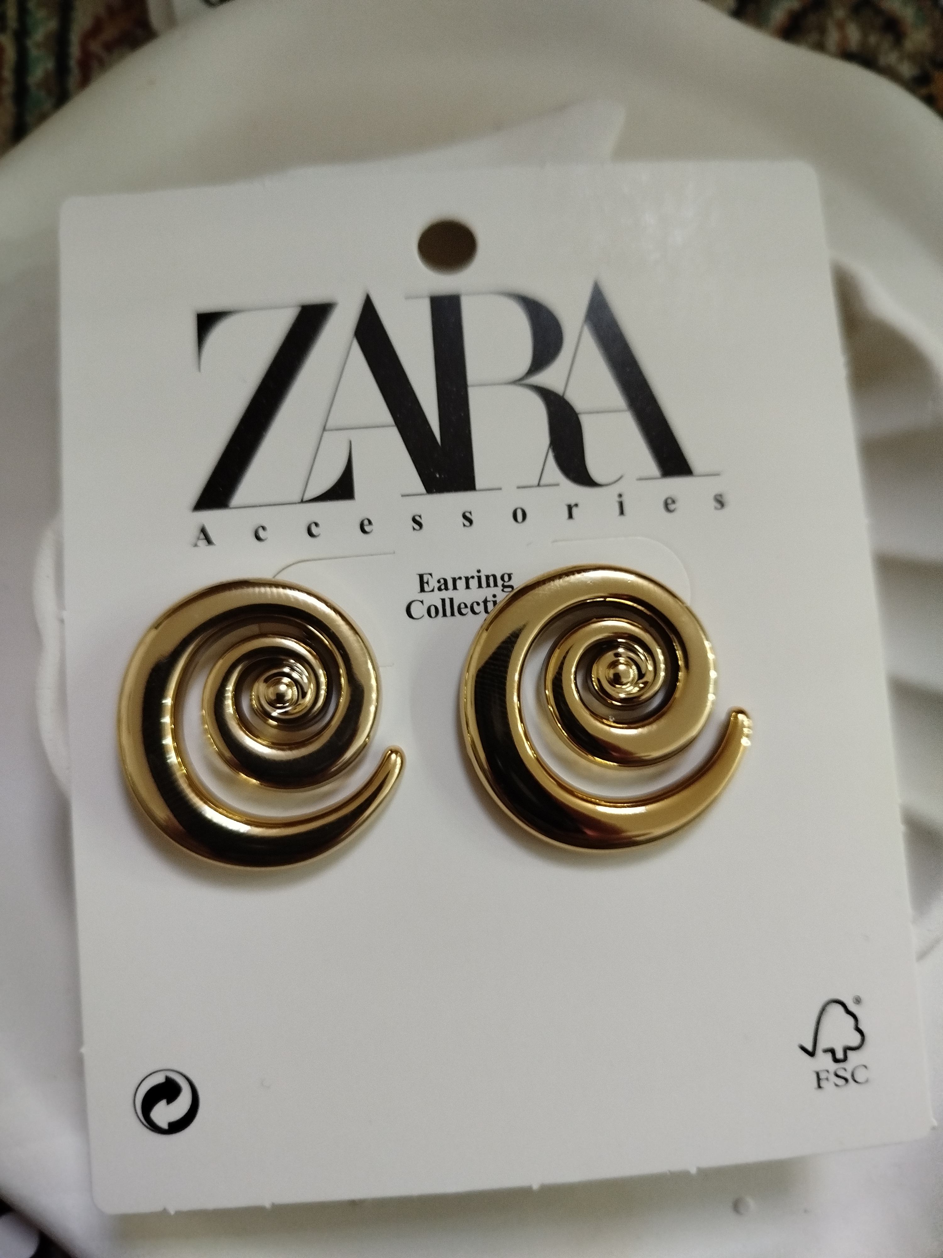 گوشواره اسپیرال مارپیچ پیچی فشن ترند استیل آبکاری رادیوم رنگ ثابت ضد حساسیت برند زارا Zara