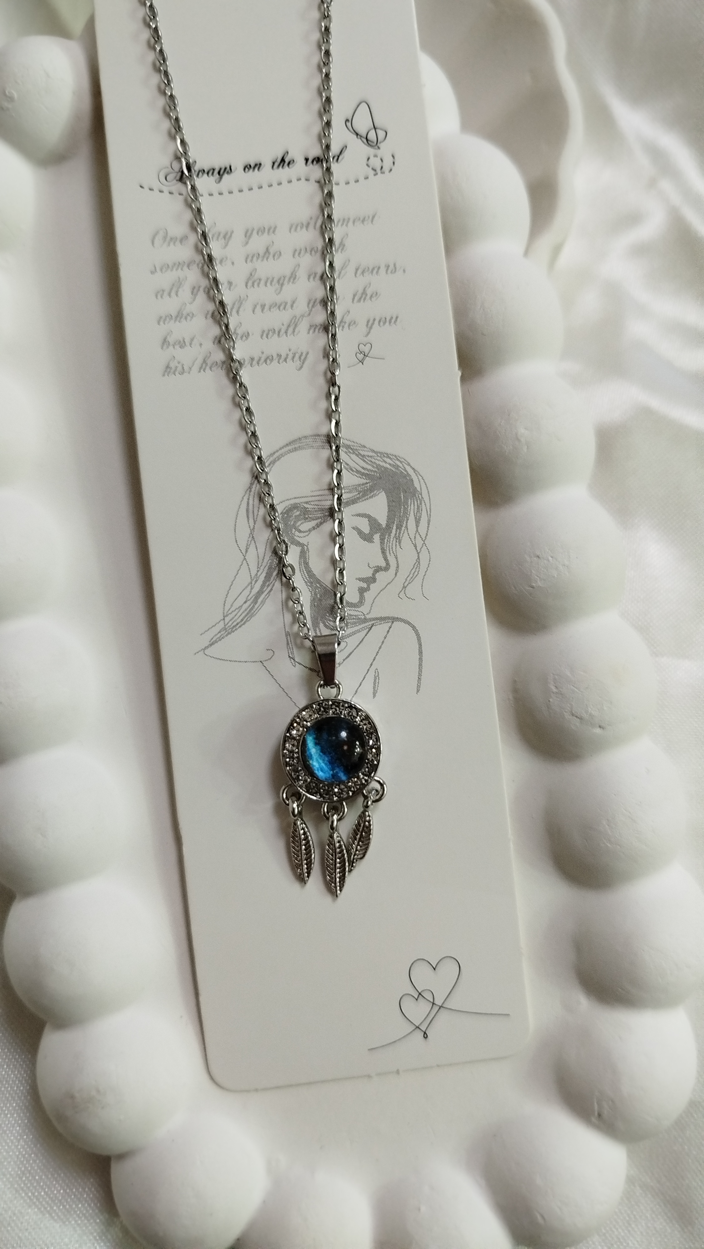 🌿 پلاک با طراحی ظریف دایرهای و آویز پر، الهامگرفته از سبک بوهو و خاصپسند