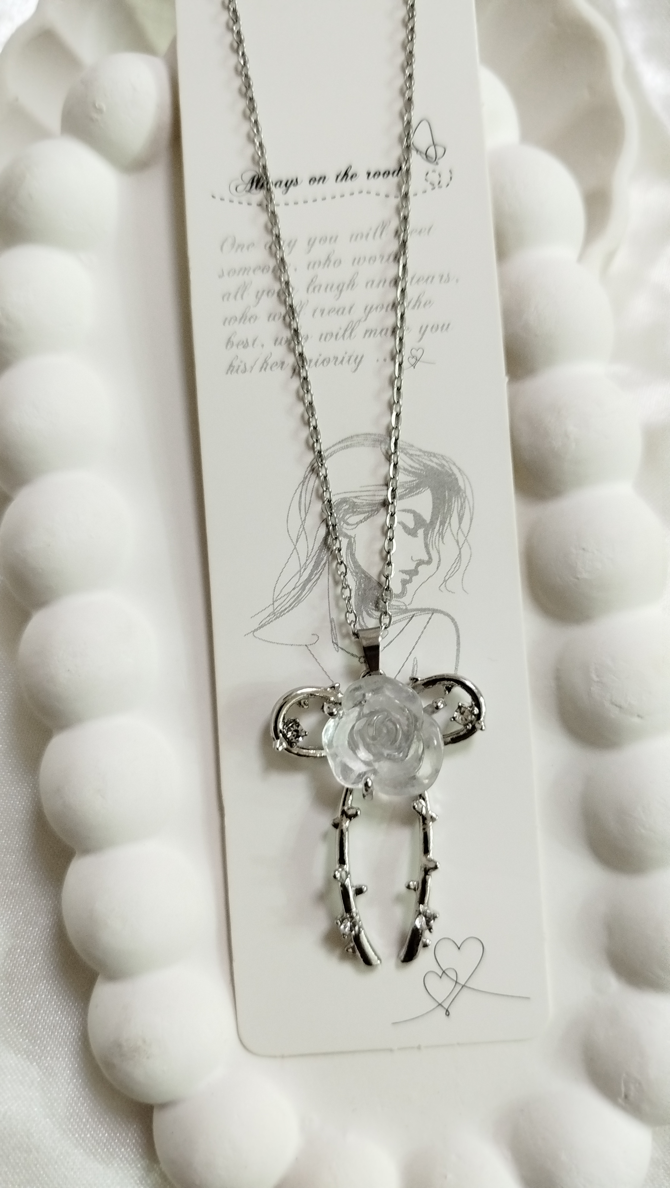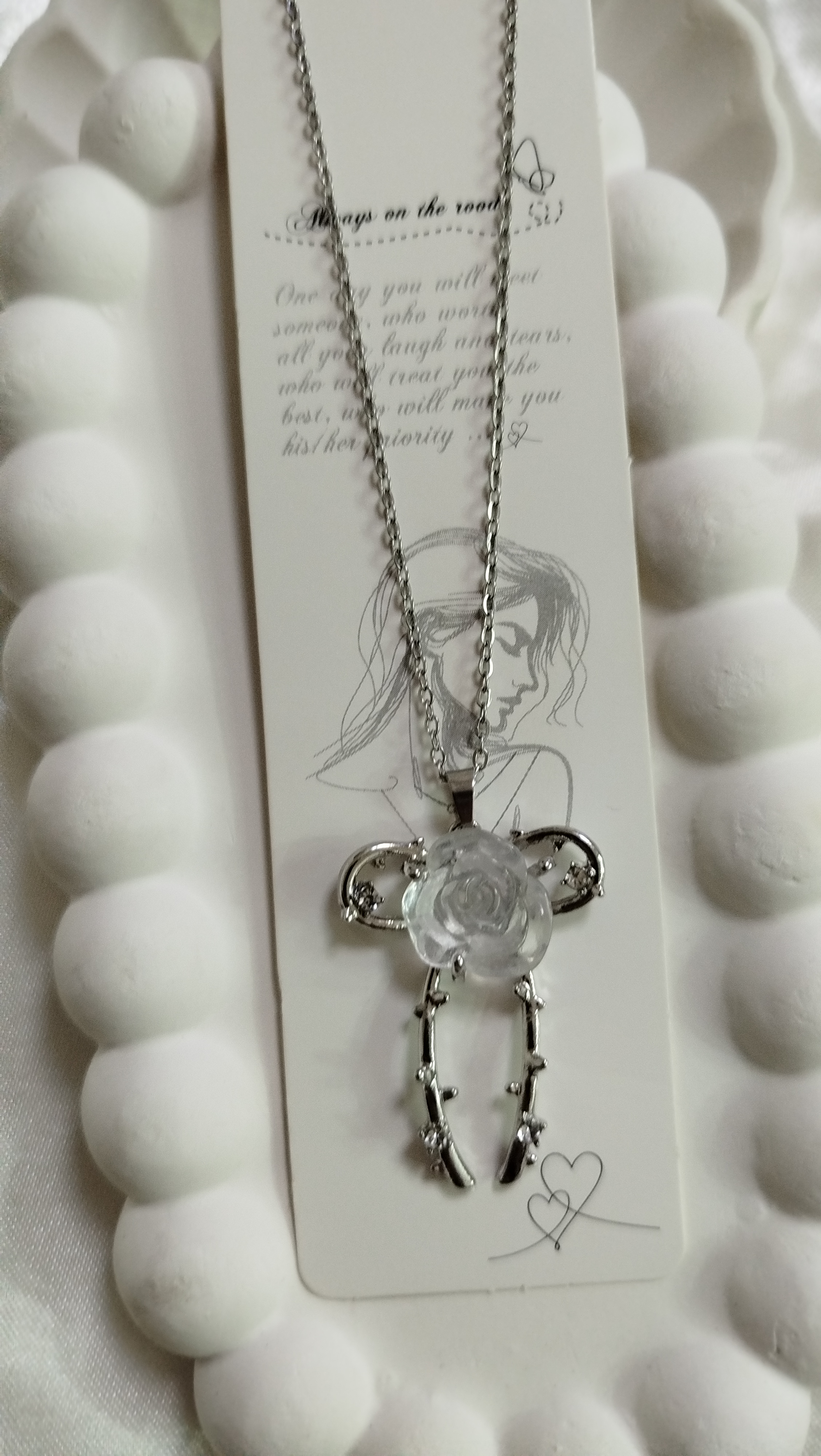 پلاک گردنبند پاپیون رز بالرین گل سنگی سفید از برند سواروسکی جنس استیل رنگ ثابت ضد حساسیت