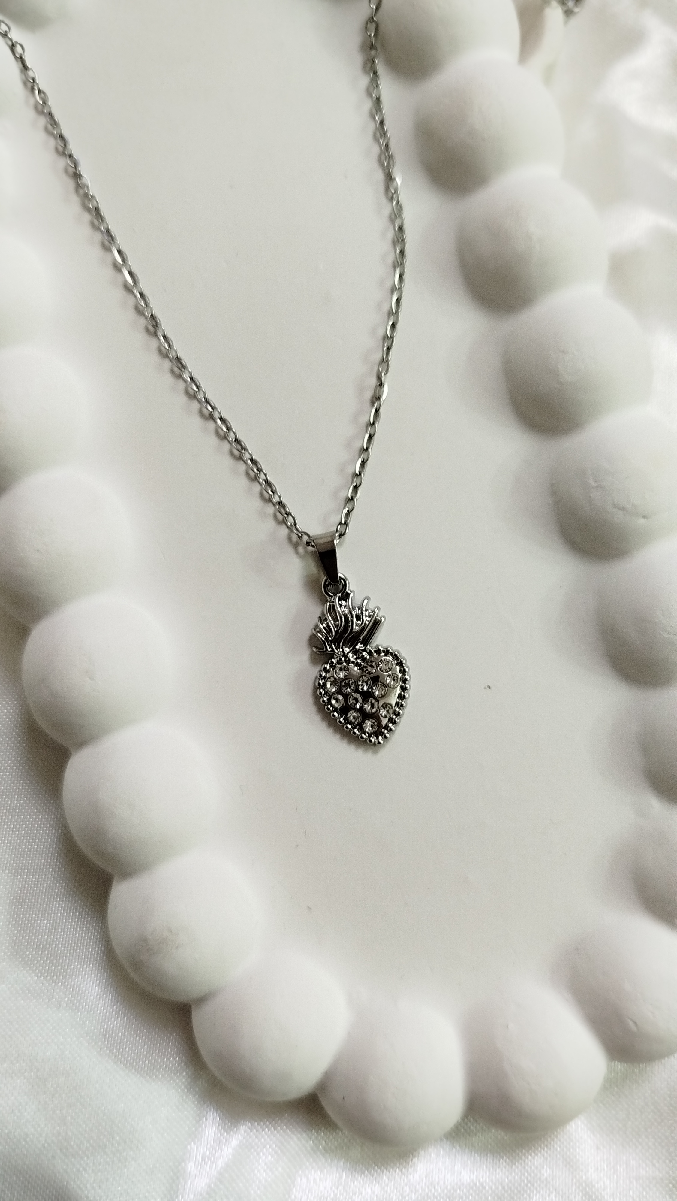 پلاک گردنبند فانتزی طرح توت‌فرنگی نگین‌دار پینترستی برند سواروسکی استیل رنگ ثابت ضد حساسیت و آلرژی