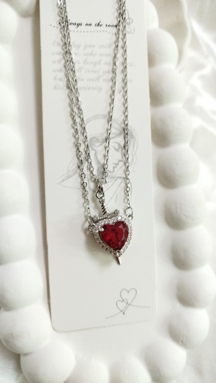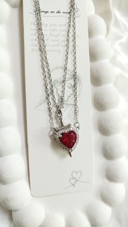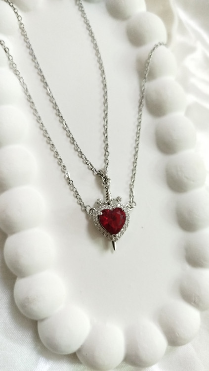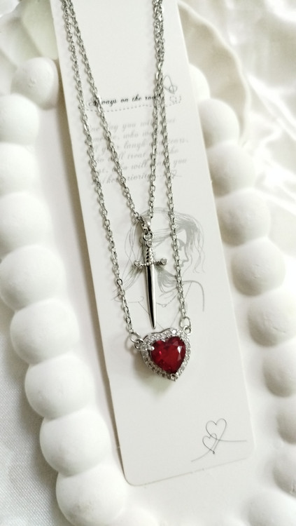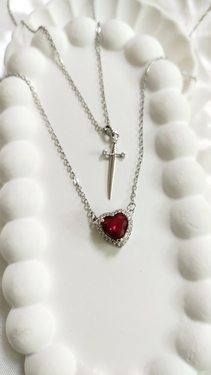 پلاک گردنبند استیل کاپلی قلب و شمشیر طرح عشق و قدرت نگین قلبی قرمز از برند سواروسکی اصل نشان دهنده عشق محافظت شده زنجیر دیپلمات استیل نقرهای