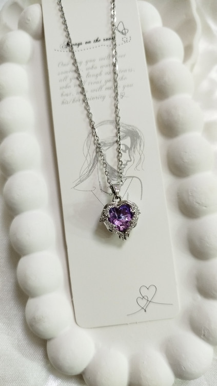 پلاک گردنبند جادو استیل قلب فرشته بالدار با نگین یاسی درخشان از برند سواروسکی اصل طرح مینیمال فانتزی پینترستی نماد آرامش ، وفاداری و محافظت زنجیر دیپلمات استیل نقرهای