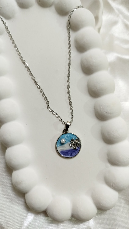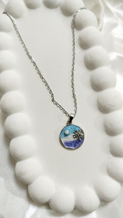 🎨 دارای میناکاری دستساز با ترکیب رنگهای آبی، سفید و بنفش
