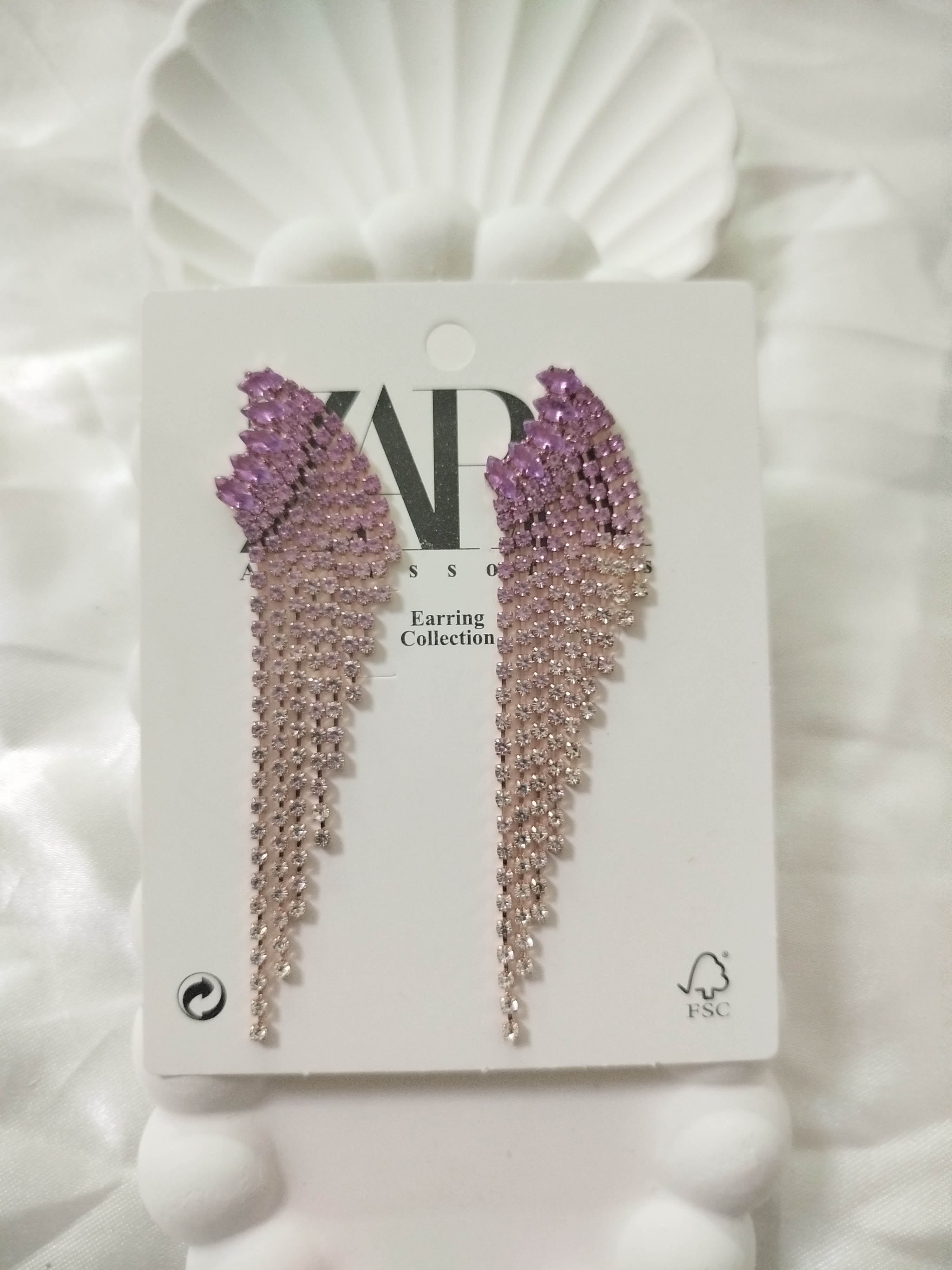 گوشواره بال کریستالی ، بال فرشته نگینی صورتی یاسی Zara نگین سنگی